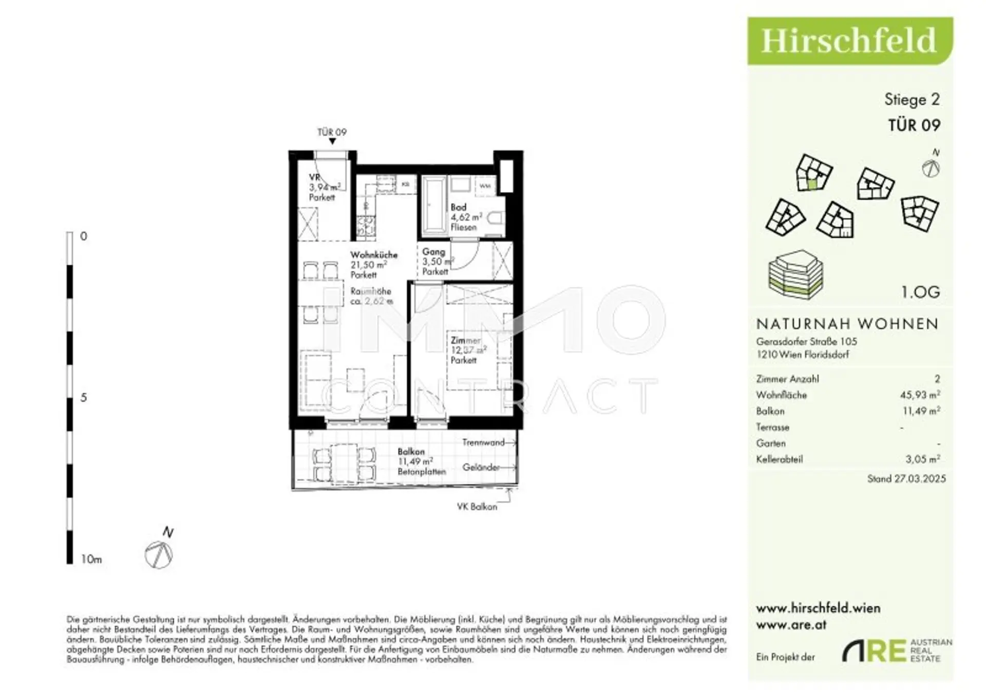 Am Rande eines weitläufigen Grünzugs, der sich bis zum Bisamberg erstreckt, entsteht im naturnahen Hirschfeld ein einzigartiges Wohnquartier: Auf drei Bauplätzen entwickelt sich ein modernes Architektur-Ensemble mit elf Gebäuden und rund 440 Wohnungen – ideal für alle, die Ruhe im Grünen mit urbaner Lebensqualität verbinden möchten.