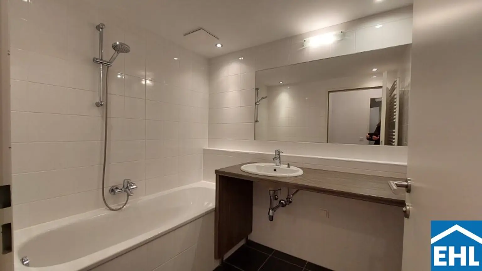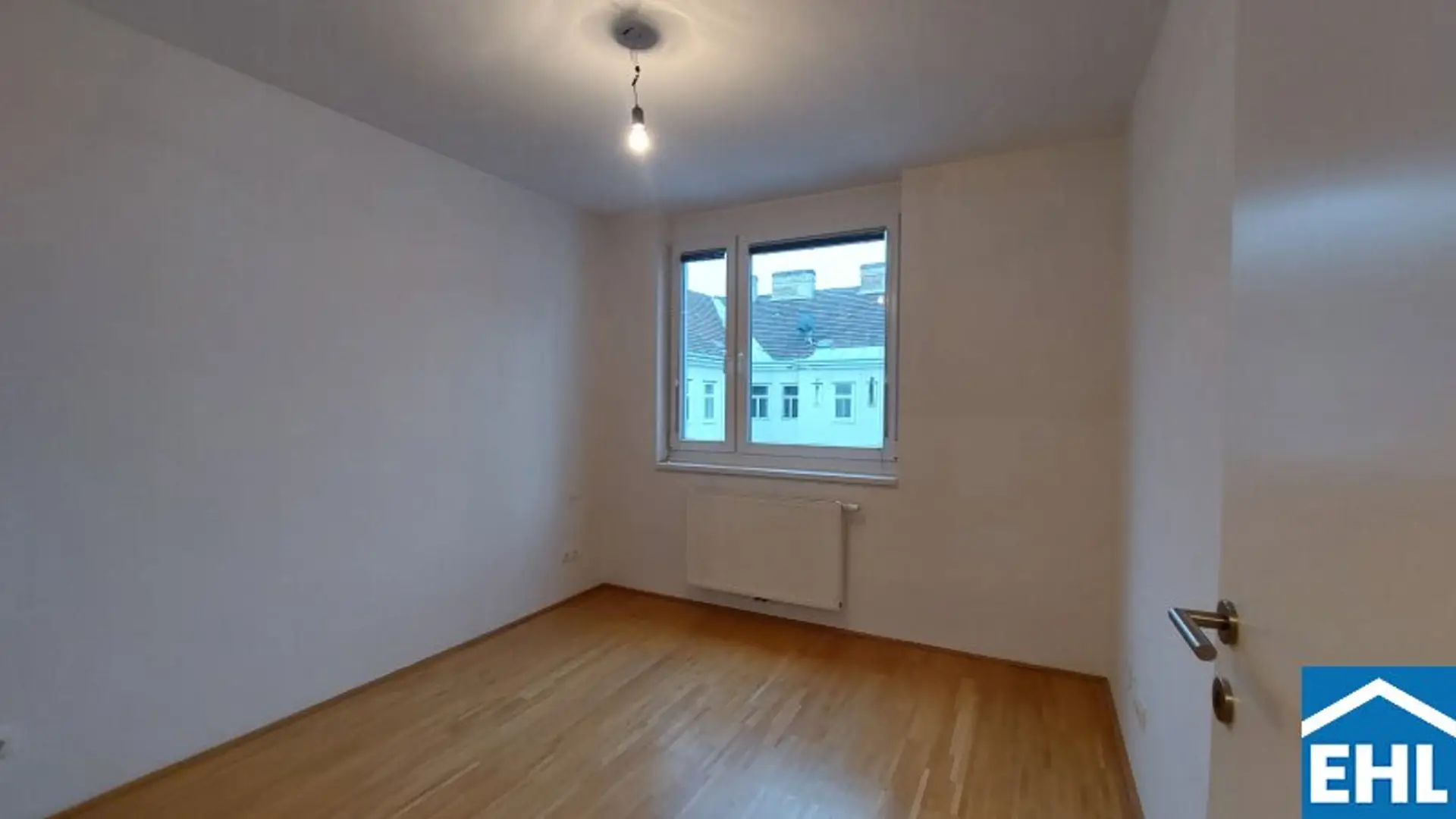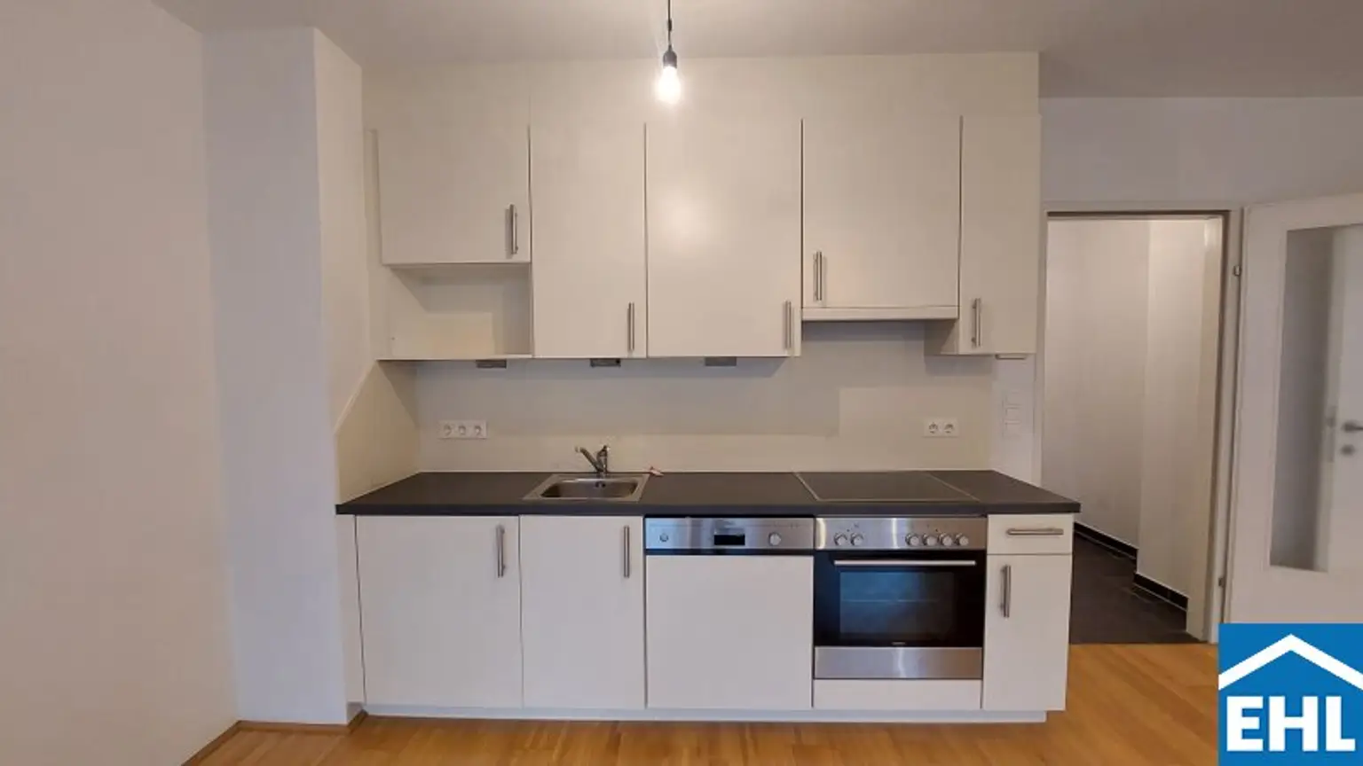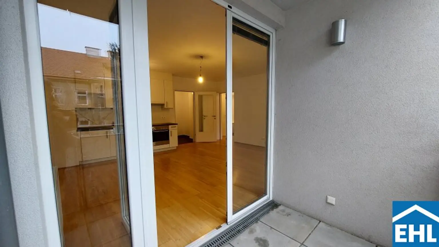 Die Wohnung selbst gliedert sich in ein großzügiges Wohnzimmer mit voll ausgestatteter Wohnküche und direktem Zugang auf den Balkon. Weiters ein getrennt begehbares Schlafzimmer, ein Badezimmer mit Waschmaschinenanschluss und Wanne, eine separate Toilette, sowie einen Vorraum. Der ca. 3.50 m² große Balkon bietet frische Erholungszeit im Freien und rundet das Wohnerlebnis perfekt ab.