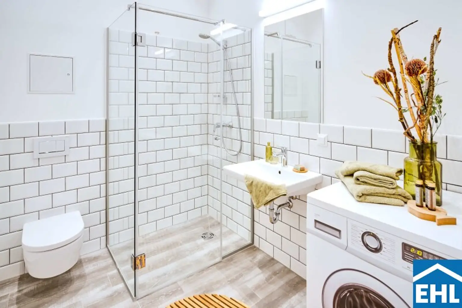 * Hochwertige Feinsteinböden in den Wohn- und Nassräumen