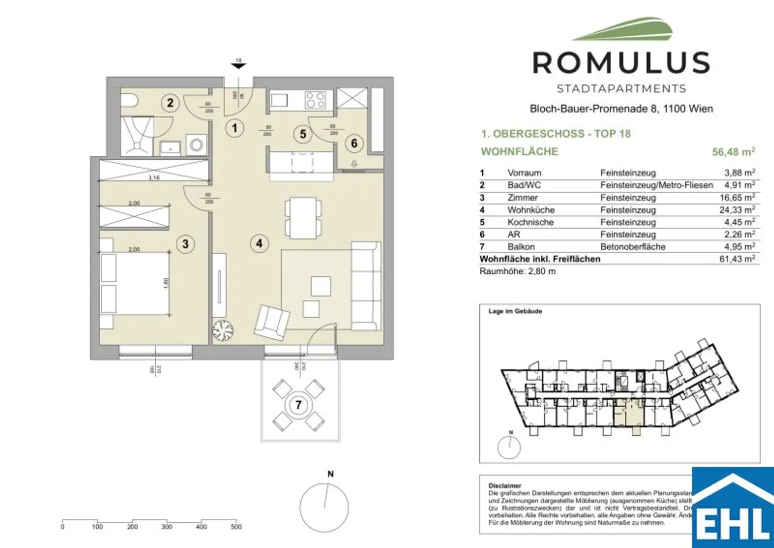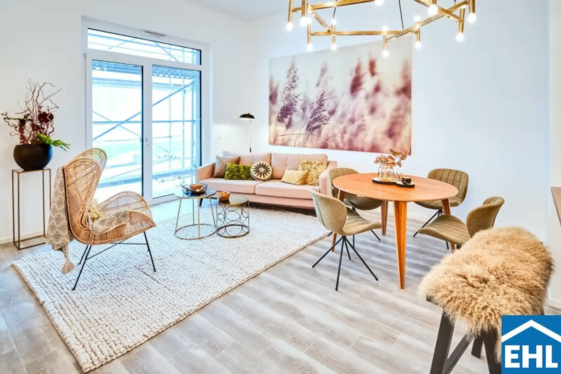 Mit dem Auto sind Sie innerhalb weniger Minuten auf der A23 und erreichen so alle weiterführenden Autobahnen. Viele Sportmöglichkeiten - und Spielplätze befinden sich ebenfalls in unmittelbarer Umgebung, wie zum Beispiel der angrenzende Helmut-Zilk-Park, welcher auch über einen Motorikpark verfügt. Die Allgemeinbereiche, wie Sauna, Fitnessraum, Partyraum und Pool sowie auch der Coworking-Space, welcher gebucht und genutzt werden kann, stehen jedem Mieter aus beiden Wohnkomplexen, mittels Chipkarte zur Verfügung. Zudem besteht voraussichtlich Möglichkeit den Strom zum Teil aus der hauseigenen Photovoltaikanlage zu beziehen. Weiters sind beide Quartierhäuser mit der Klimaaktiv Bronze Auszeichnung zertifiziert.