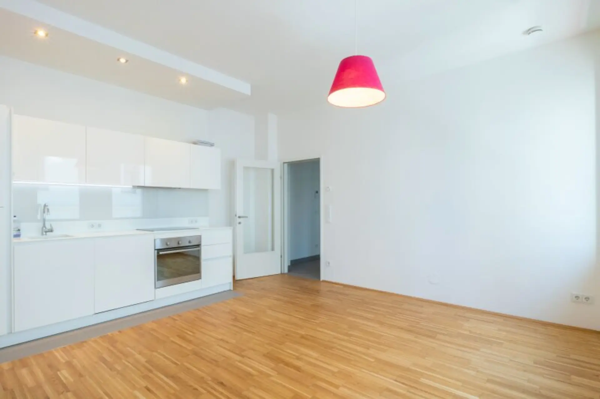 Wir können Ihnen eine hochwertig ausgestattete Hochglanzküche bieten und ein helles Designerbad mit Dusche und Fenster, großem Waschbecken und Handtuchwärmer.