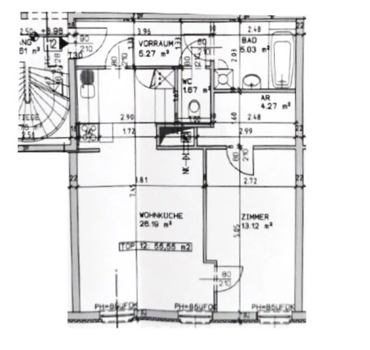 Zur Vermietung (befristet auf 5 Jahre) gelangt diese 2-Zimmer-Wohnung auf der Wiedner Hauptstraße.