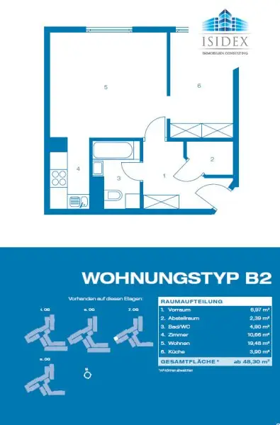 Noch haben Sie die "Qual der Wahl", denn es gibt darüber hinaus noch weitere 1 und 2 Zimmer Wohnungen mit Größen von ca. 41 m² bis ca. 54 m² und einer preislichen Bandbreite von € 207.000,- bis € 269.000,-.