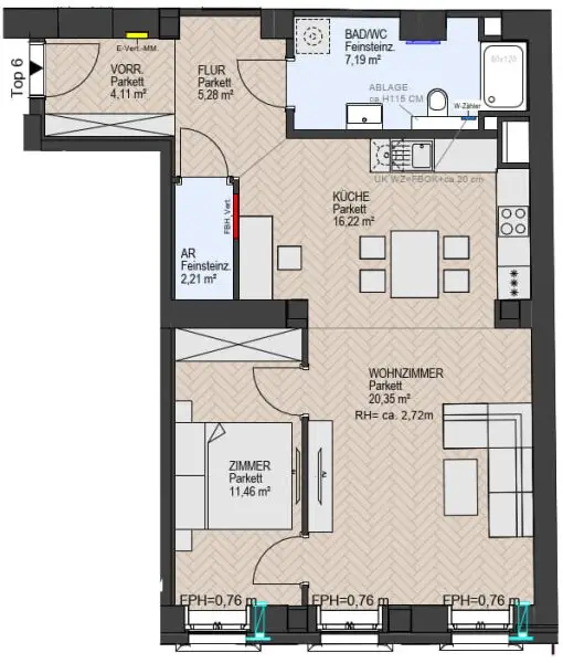 Ausstattung: Boden Bad Abstellraum Fußbodenheizung