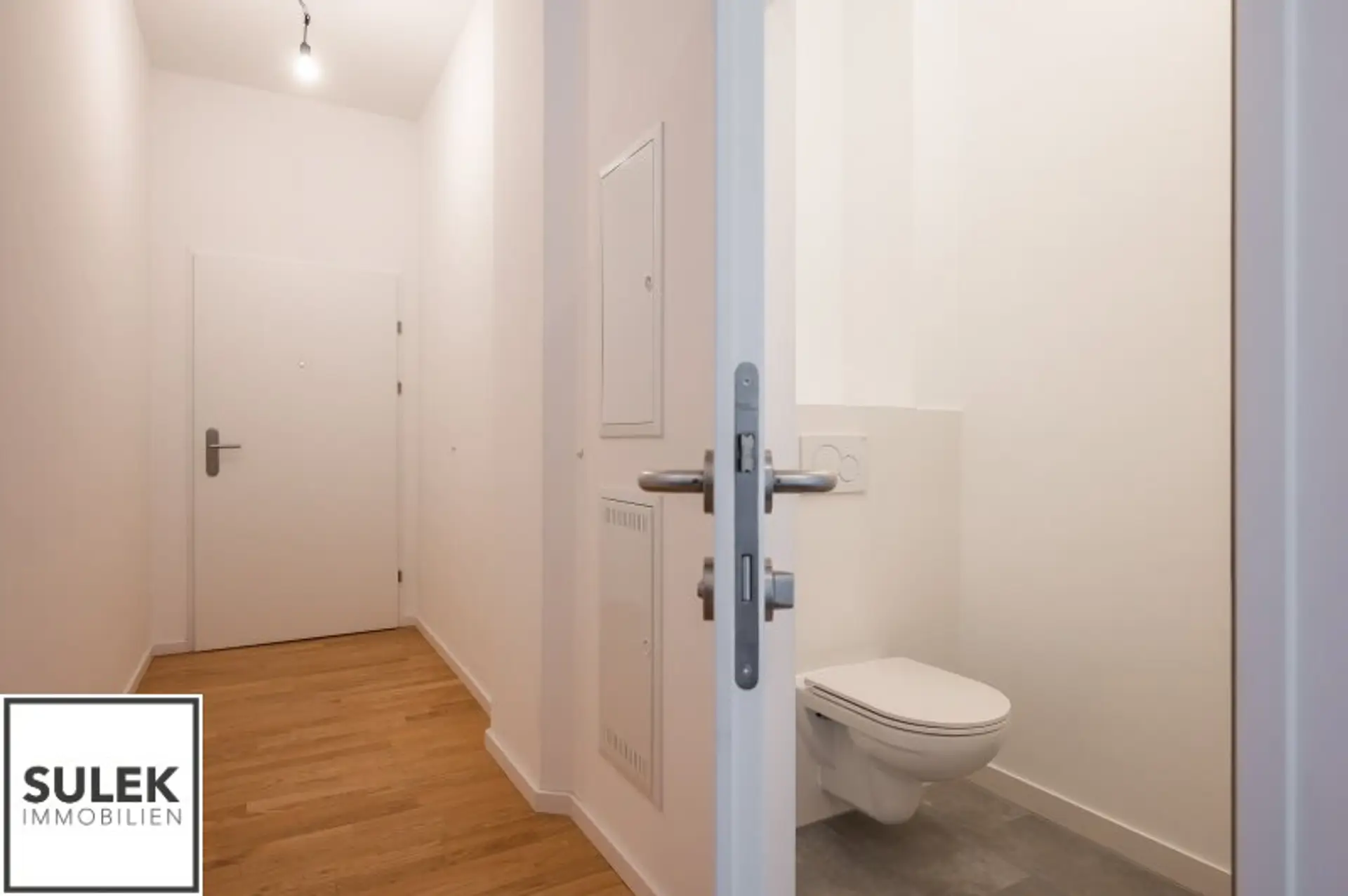 Alle Räumlichkeiten, bis auf das Schlafzimmer, sind über das Vorzimmer zentral begehbar. Das Schlafzimmer ist über die Wohnküche erreichbar.