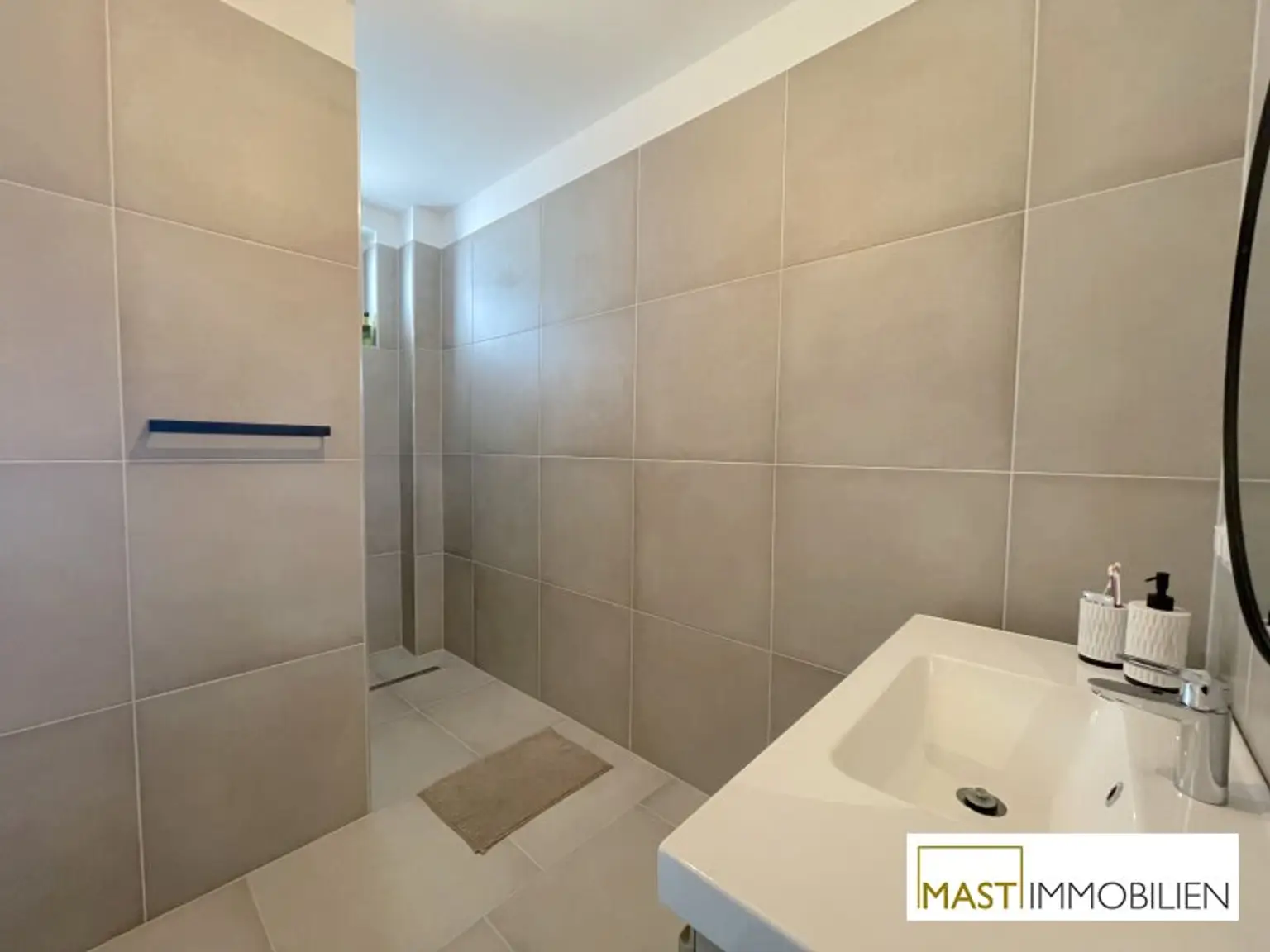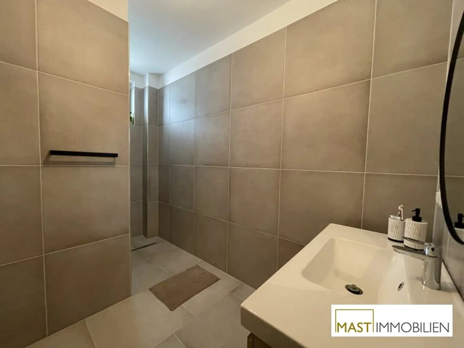 * modernes, möbliertes Bad mit Walk-In-Dusche