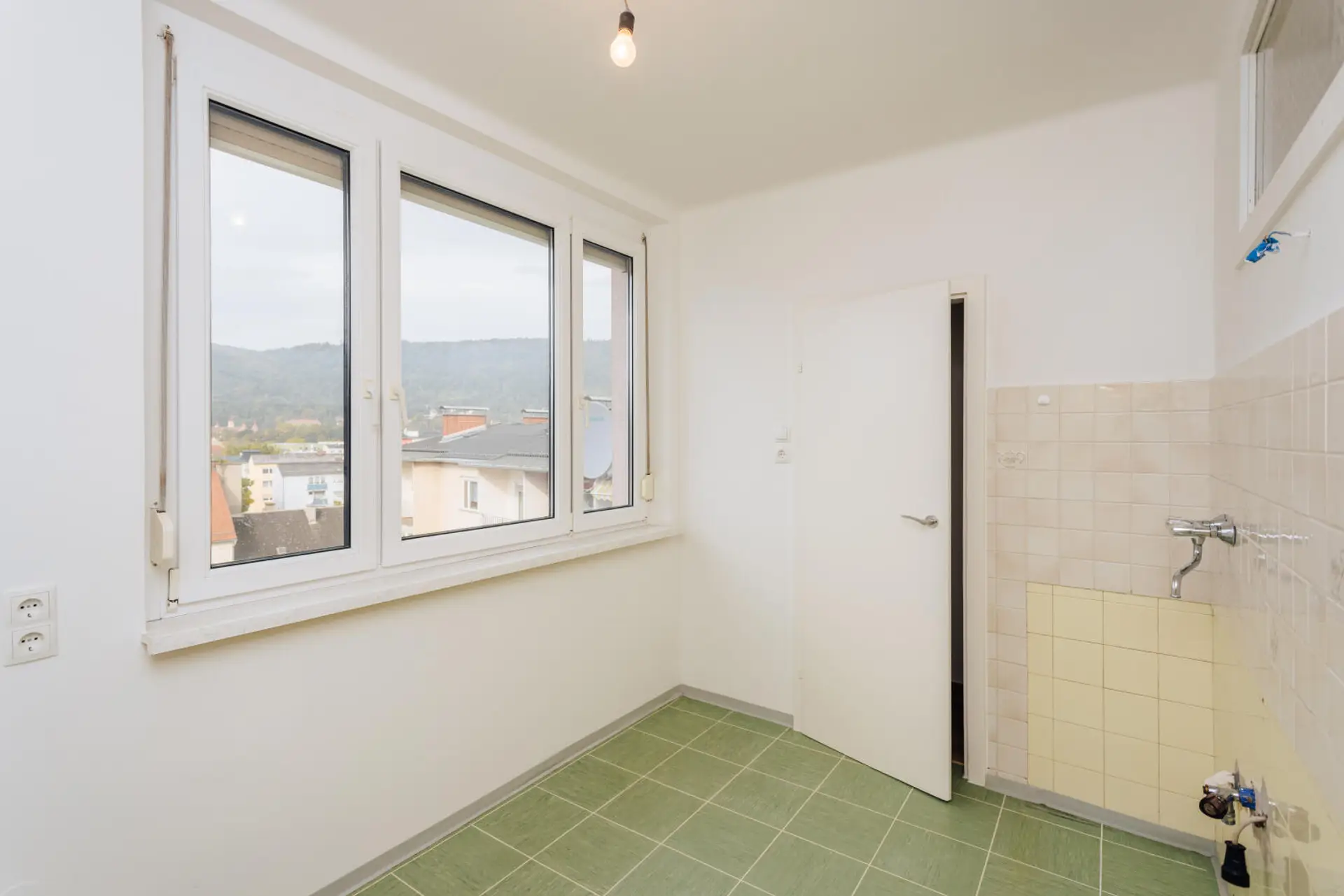 Diese sehr gut geschnittene 2,5 Zimmer Wohnung im 7. Obergeschoss (mit Lift), westseitig ausgerichtet. Vom Balkon genießen Sie einen wunderbaren Ausblick Richtung Schloss Eggenberg. Das Haus wurde bereits energetisch verbessert (Vollwärmeschutz) und mit Kunststofffenstern ausgestattet. Nicht zugeordnete Außenstellplätze stehen den Eigentümern vor dem Haus zur Verfügung (ausschließlich über die Schrankenanlage befahrbar).