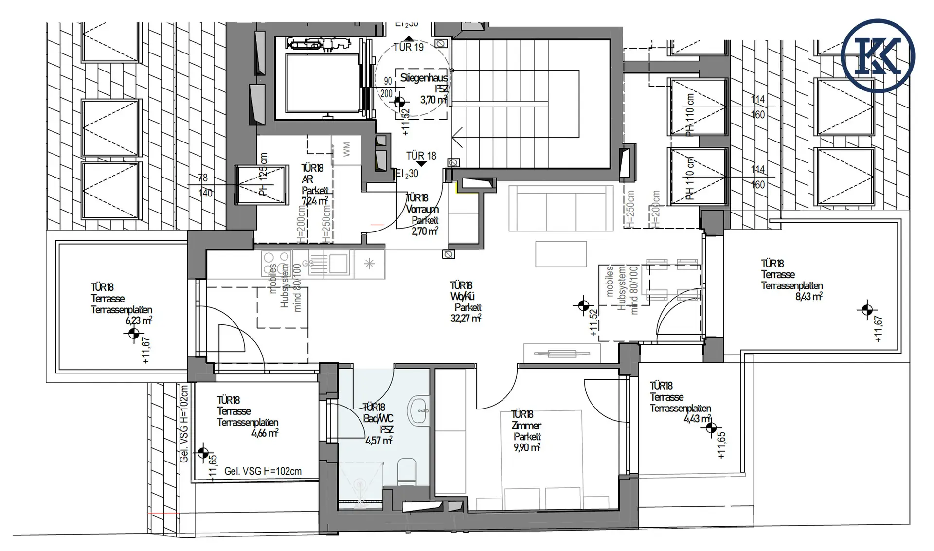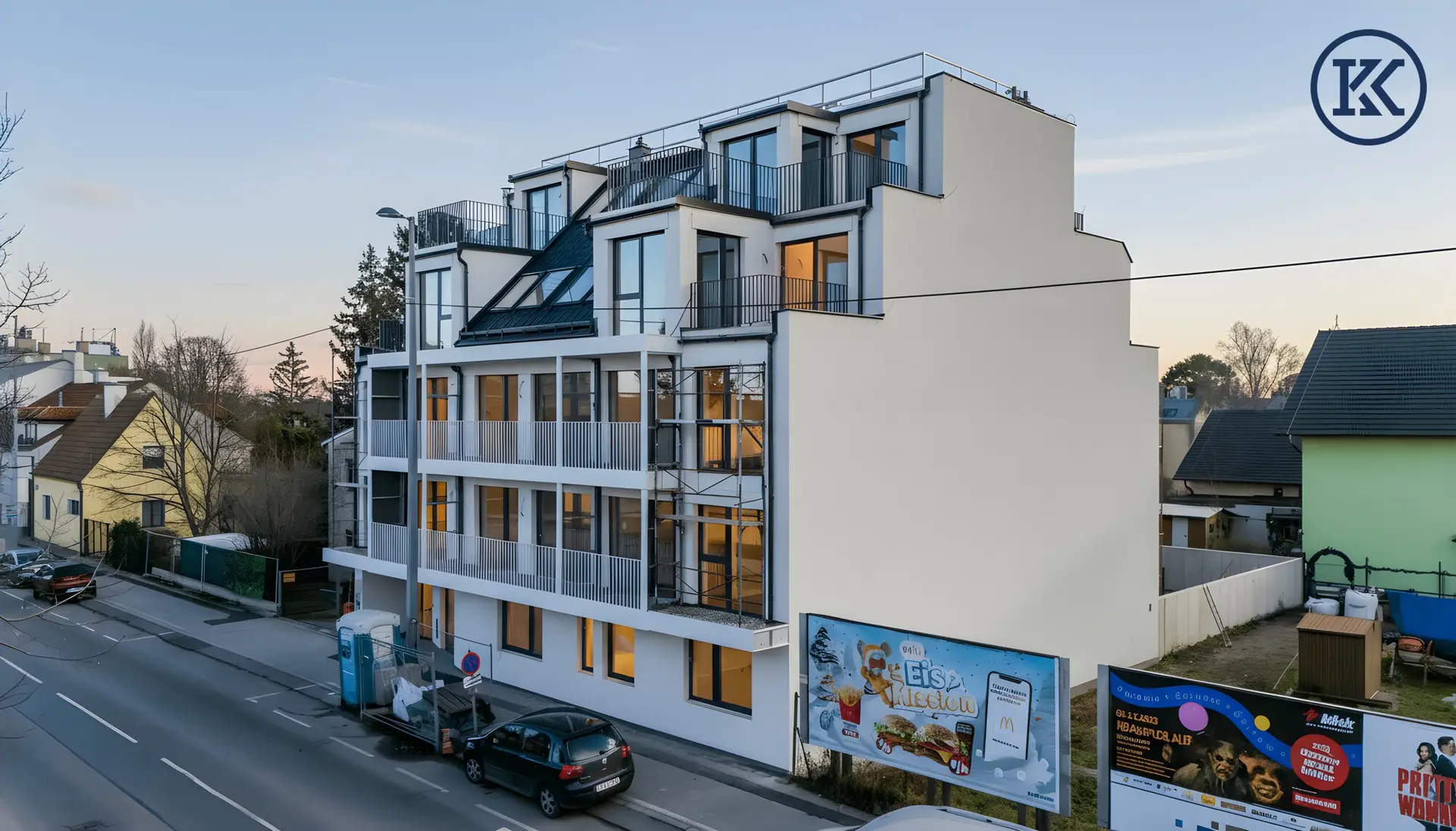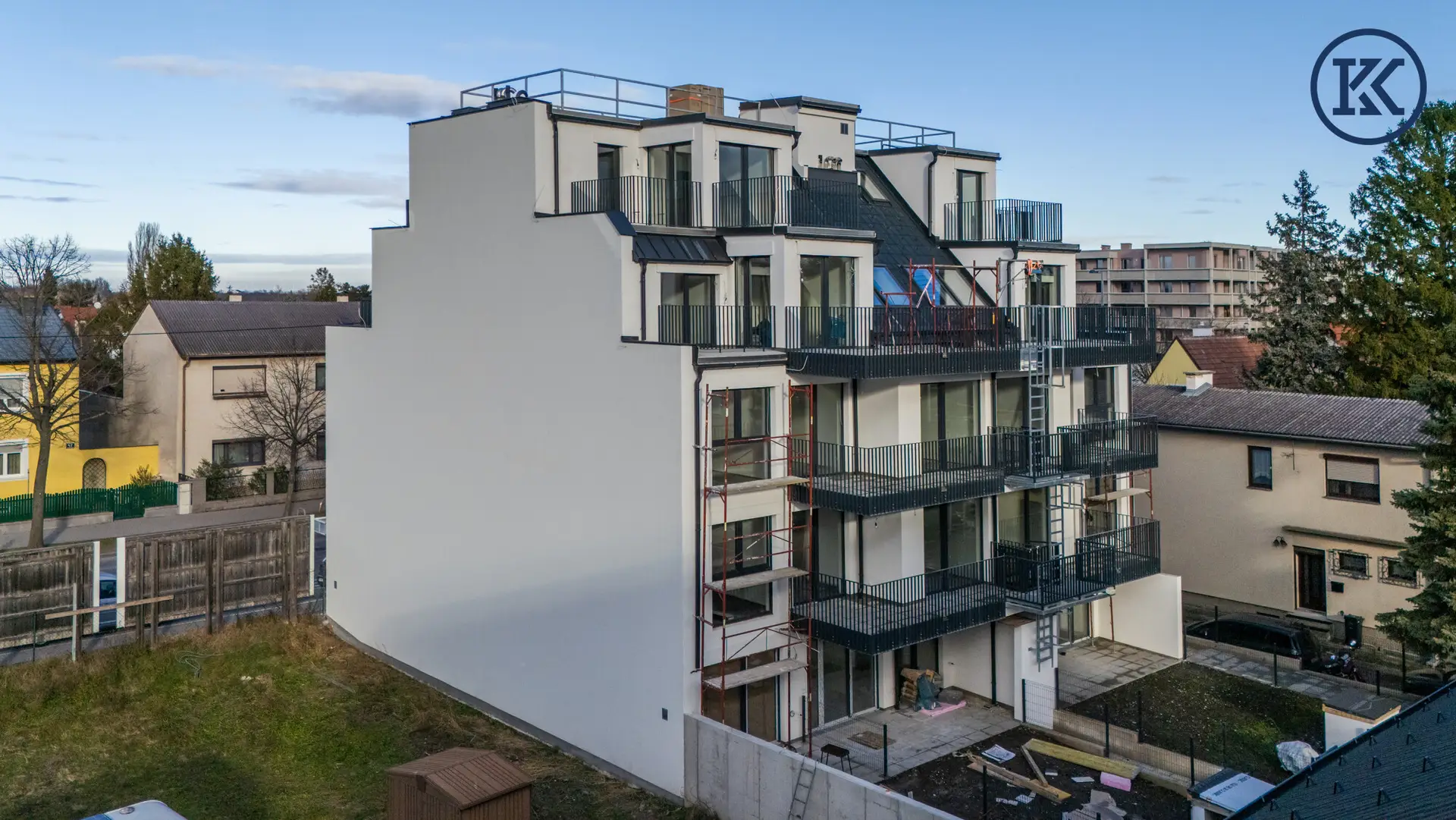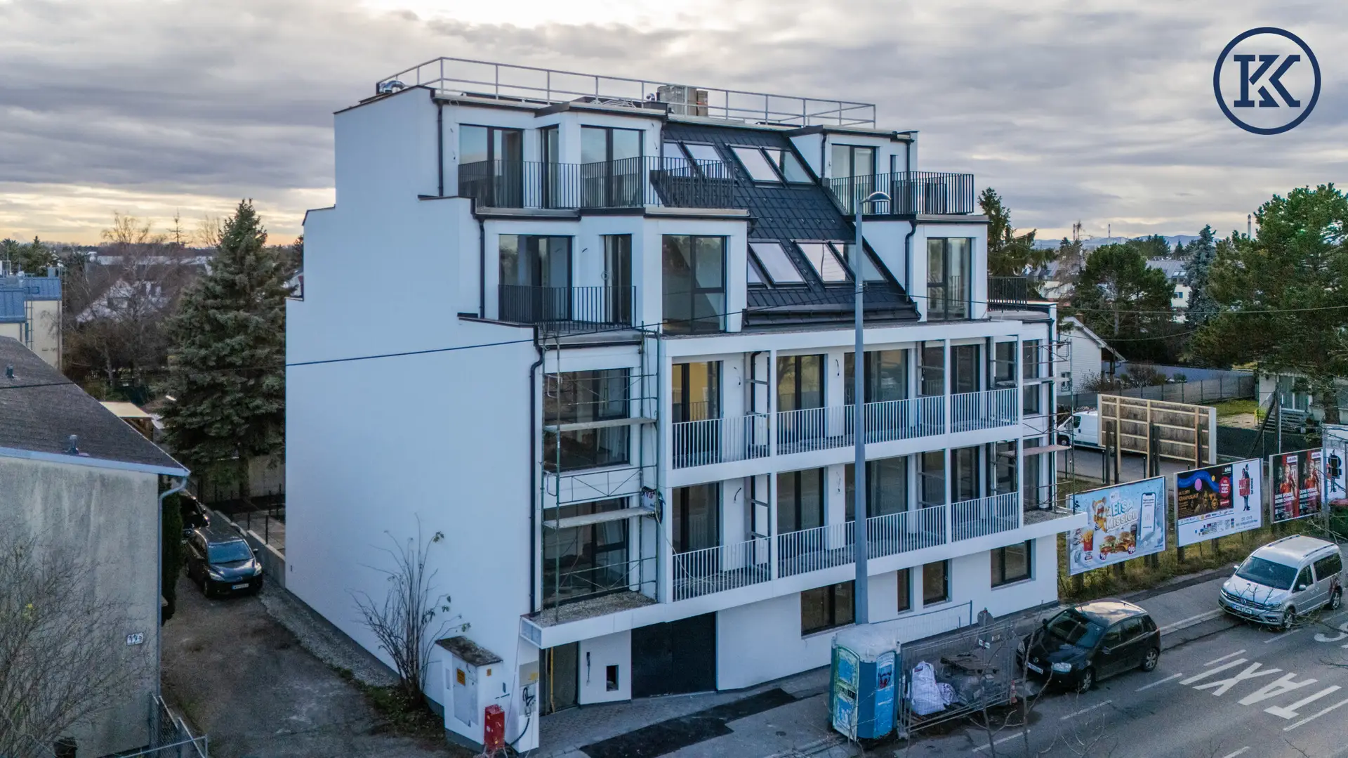 Diese Wohnung ist das Kronjuwel der Dachgeschosseinheiten: Sie bietet im 2. Dachgeschoss ein unvergleichliches Wohngefühl. Die Wohnfläche beträgt 56,68 m², doch das wahre Erlebnis ist die sensationelle, 23,75 m² große Dachterrasse. Diese riesige Freifläche bietet maximale Privatsphäre, Platz für große Gartenmöbel und einen fantastischen Blick – echtes Penthouse-Feeling inklusive! Der Grundriss ist optimal auf zwei Zimmer ausgelegt und maximiert die Lichtausbeute. Zur Premium-Ausstattung im Neubau gehören eine energiesparende Fußbodenheizung und eine Klimavorbereitung. Durch die Lage im obersten Geschoss und die exklusive Terrassengröße ist diese Immobilie ein einzigartiges Angebot in Eßling. Sichern Sie sich diesen außergewöhnlichen Erstbezug ab Anfang Februar 2026.