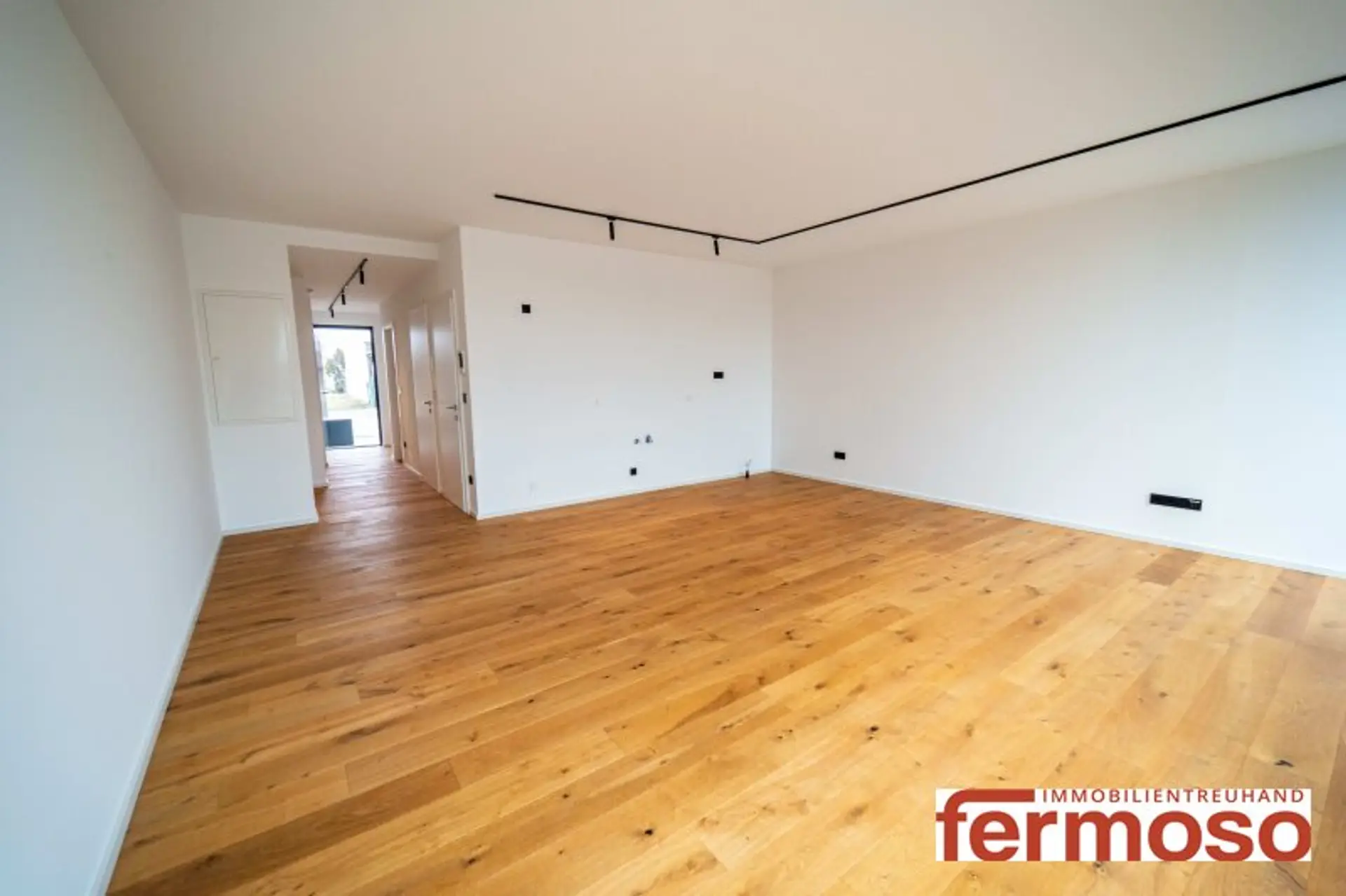 Der offen gestaltete Wohnbereich bildet das Herzstück der Wohnung und schafft gemeinsam mit der Küche ein modernes, lichtdurchflutetes Wohnambiente.