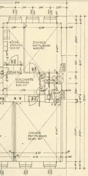 Die Wohnung verfügt über insgesamt 2 Zimmer, ein ehemaliges Bad sowie ein WC. Ein zusätzliches Zimmer war ursprünglich als Küche vorgesehen und verfügt noch über verdeckte Küchenanschlüsse, was zusätzliche Flexibilität in der Grundrissgestaltung ermöglicht. Das ehemalige Badezimmer ist sanierungsbedürftig und bietet Raum für individuelle Anpassungen. Ergänzt wird das Raumangebot durch zwei Kellerabteile.