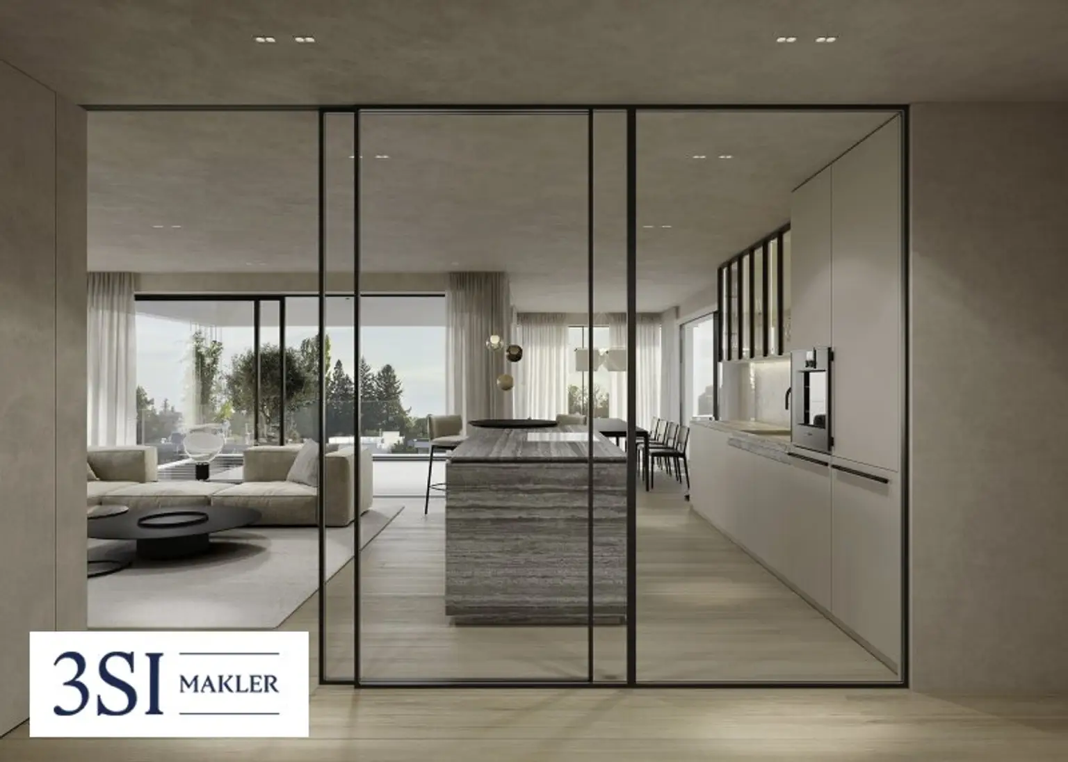 Im Zusammenspiel klarer Linien und präzise gesetzter Details entsteht die architektonische Qualität von THE SUPERIOR. Jede Entscheidung folgt einem übergeordneten Prinzip: Reduktion, Dauerhaftigkeit und Materialität. Die Innenräume überzeugen durch sorgfältig ausgewählte Oberflächen, die Ruhe ausstrahlen und zugleich Tiefe entwickeln. Eichenparkett bringt natürliche Wärme in die Räume, während großformatige Verglasungen Licht und Weitblick selbstverständlich integrieren. Auch in den Bädern setzt sich diese Klarheit fort. Hochwertiges Feinsteinzeug trifft auf fein ausgeführte Sanitärobjekte und schafft eine Atmosphäre, die zurückhaltend und zugleich anspruchsvoll wirkt. Technik versteht sich hier als diskrete Unterstützung. Split-Kühlgeräte sorgen für angenehme Temperaturen, ohne in Erscheinung zu treten. Elektrisch gesteuerte Beschattungselemente regulieren Licht und Atmosphäre im Hintergrund, während die Video-Gegensprechanlage Sicherheit und Privatsphäre gewährleistet.