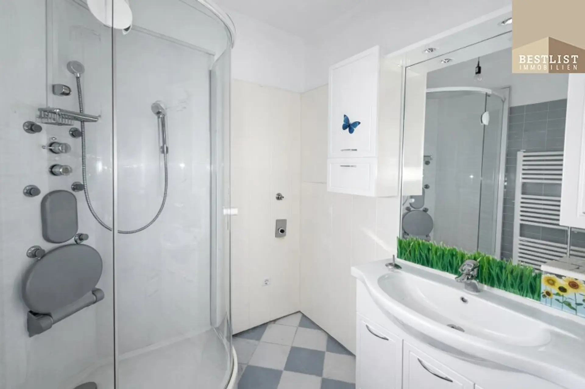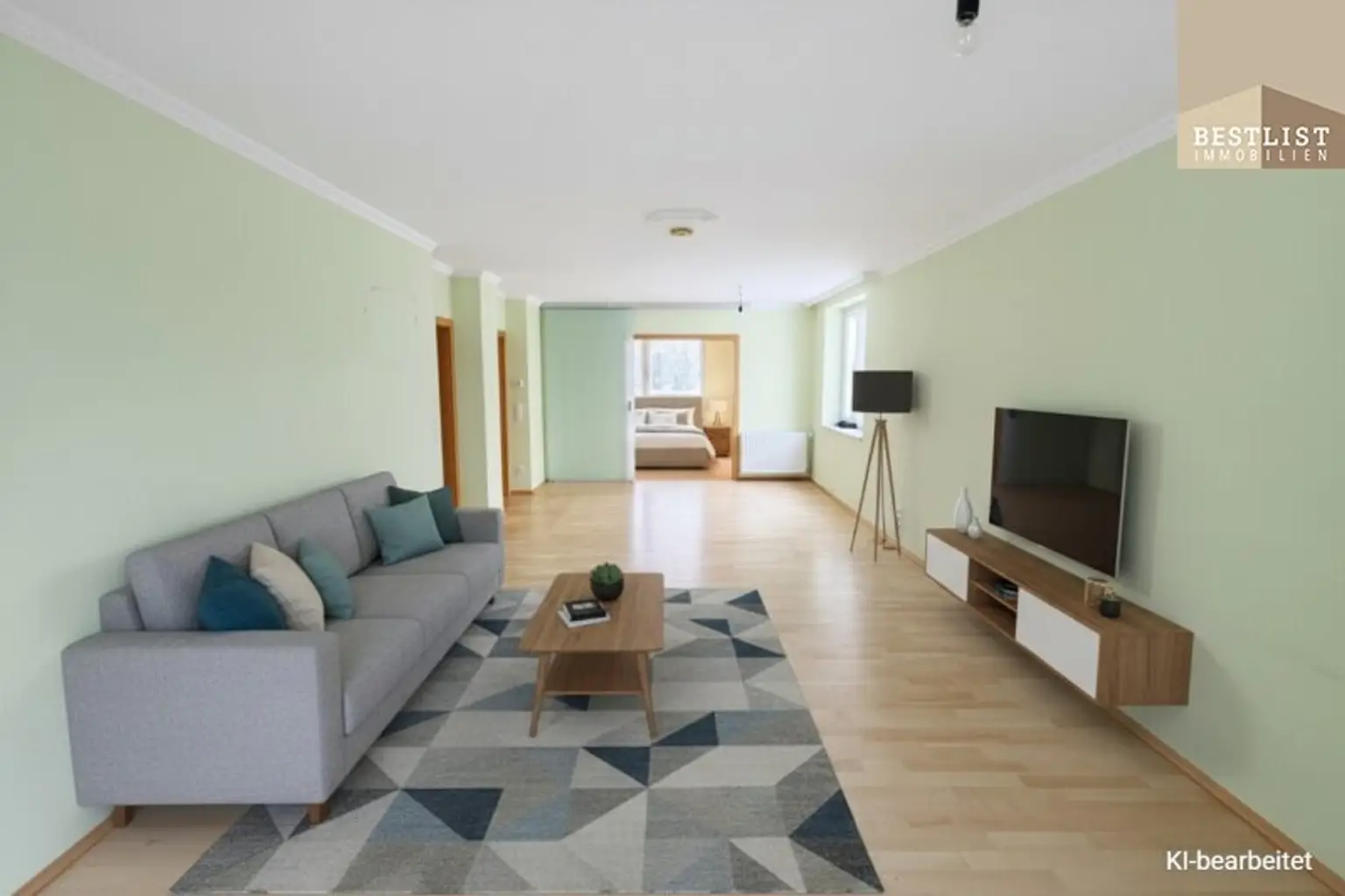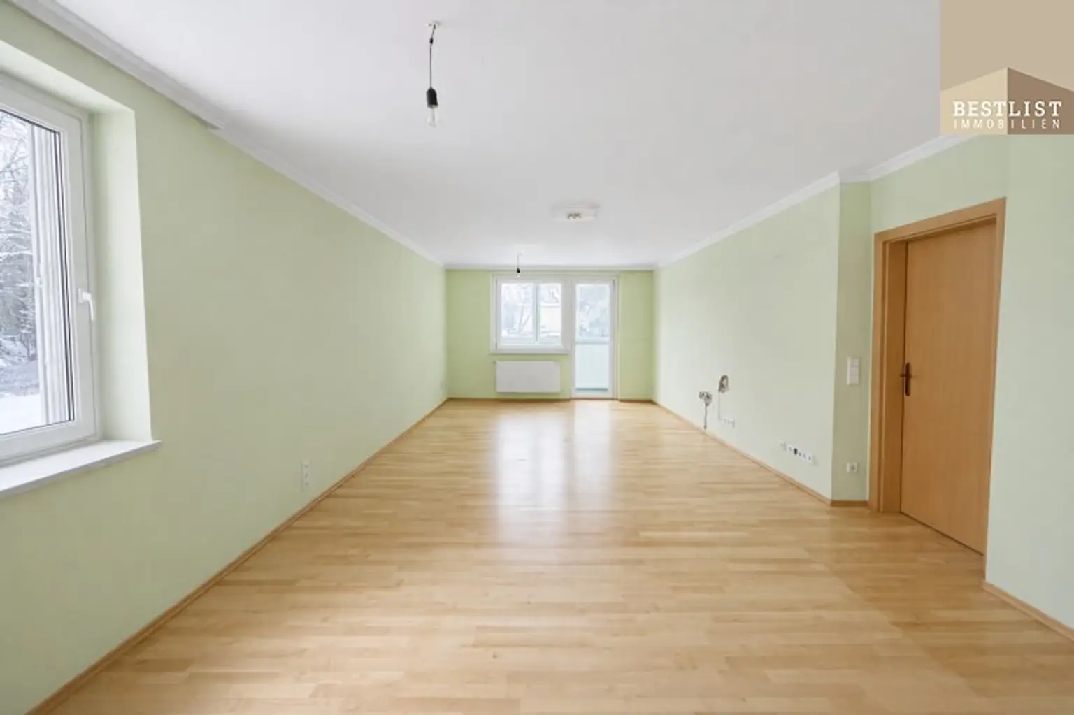 Beim Betreten der Wohnung gelangt man in einen zentralen, gut dimensionierten Vorraum, von dem aus sämtliche Räume getrennt begehbar sind. Der große Wohnbereich mit vorgelagerter Loggia bietet durch die Südost-Ausrichtung angenehme Lichtverhältnisse. Schlafzimmer, Küche, Badezimmer sowie das separate WC sind ideal vom Vorraum aus erreichbar.