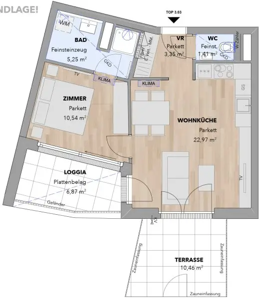 Eine Vielzahl an Schulen (VS, BG, BRG, VHS, Mittelschule, Musikschule), Fachärzte, Supermärkte sowie nette Lokale befinden sich ebenfalls in Gehweite.