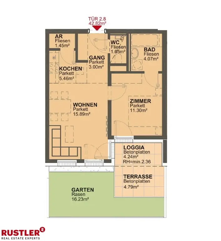 Zwischen Marchfeldkanal, dem Bisamberg und der beliebten Stammersdorfer Kellergasse mit seinen Heurigen gelegen, befindet sich dieses Projekt zum Wohlfühlen im 21. Wiener Gemeindebezirk. Man ist umgeben von reichlich Grün und inmitten von Naherholungsgebieten, wodurch reichlich Freiraum für Entspannung und Erholung geboten wird. Vom Bisamberg aus ist der Blick auf die Stadt und den Donauraum einmalig. Die Landschaft ist Lebensraum für viele bemerkenswerte Tiere und Pflanzenarten und erlaubt zudem den traumhaften Ausblick auf unvergleichliche Sonnenuntergänge. Genießen Sie die Vorzüge des Stadtlebens, gepaart mit Ruhe und wunderschöner Natur! Die zeitlose Architektur des Gebäudes fügt sich harmonisch ins Umfeld ein. Die Erschließung aller 65 Wohnungen erfolgt über zwei Stiegenhäuser samt Aufzügen. Alle Wohneinheiten verfügen über unterschiedliche Freiflächen, wie Eigengärten, Terrassen, bzw. Loggien. Im Kellergeschoss ist die Errichtung einer Tiefgarage mit 63 PKW-Stellplätzen vorgesehen, zudem befinden sich dort auch die Technik- und Einlagerungsräume, sowie Fahrradabstellplätze. Ein zusätzlicher Kinderwagenabstellraum ist im Erdgeschoss vorgesehen. Ausstattung: • Vollwärmeschutzfassade mit hervorragender Energieeffizienz • Eichenparkettböden in allen Wohn- und Schlafräumen • Fußbodenheizung mit Raumthermostat • Heizung- und Warmwasser komfortabel über Fernwärme • Qualitativ hochwertige Armaturen • Außenliegender Sonnenschutz bei den Fenstern • Kabel-TV / Internet Anschluss • Wohnungseingangstüren mit Einbruchsschutz (WK II bzw. RC2) • Einlagerungsraum für jede Wohnung • Kinderwagenabstellplätze im EG • Fahrradabstellplätze im UG Der PKW-Stellplatz in der hauseigenen Tiefgarage kostet € 85,20 und kommt zu den monatlichen Gesamtkosten hinzu. Idyllische Gassen, Weinberge und traditionelle Heurige warten auf Genießer. Ein schönes Ausflugsziel in der näheren Umgebung bietet der Bisamberg. Lassen Sie den Alltagsstress zu Hause und entspannen Sie zwischen den Weinreben mit einem herrlichen Blick über Wien. Erledigungen des täglichen Bedarfs können großteils zu Fuß erledigt werden. Der Autobus ist nur eine Minute entfernt, die Straßenbahn in Gehweite stellt die Direktverbindung zur U-Bahn-Linie U6 dar. Somit kann man die Vorzüge des ländlichen Stadtrands genießen und erreicht dennoch gemütlich die Wiener Innenstadt. Ein Shopping-Vergnügen bietet das G3 Shopping Resort Gerasdorf, wo einkaufen wohlfühlen ist, sowie das Shopping Center Nord inklusive Kino-Erlebnis.