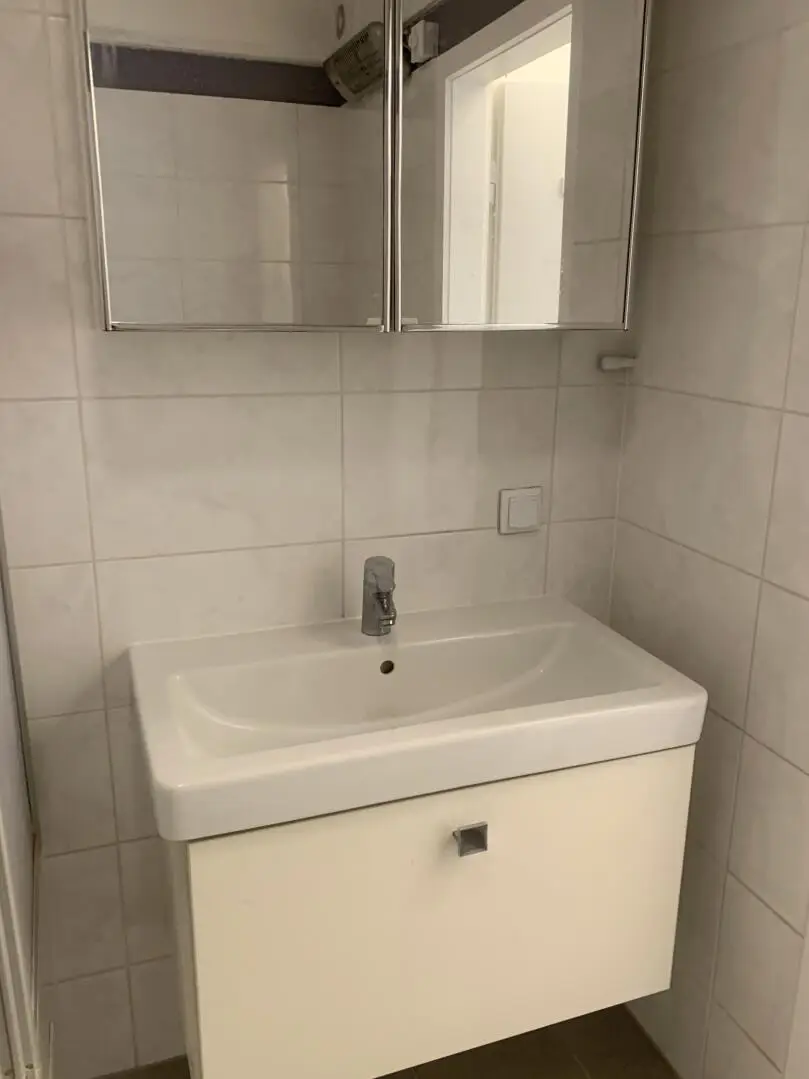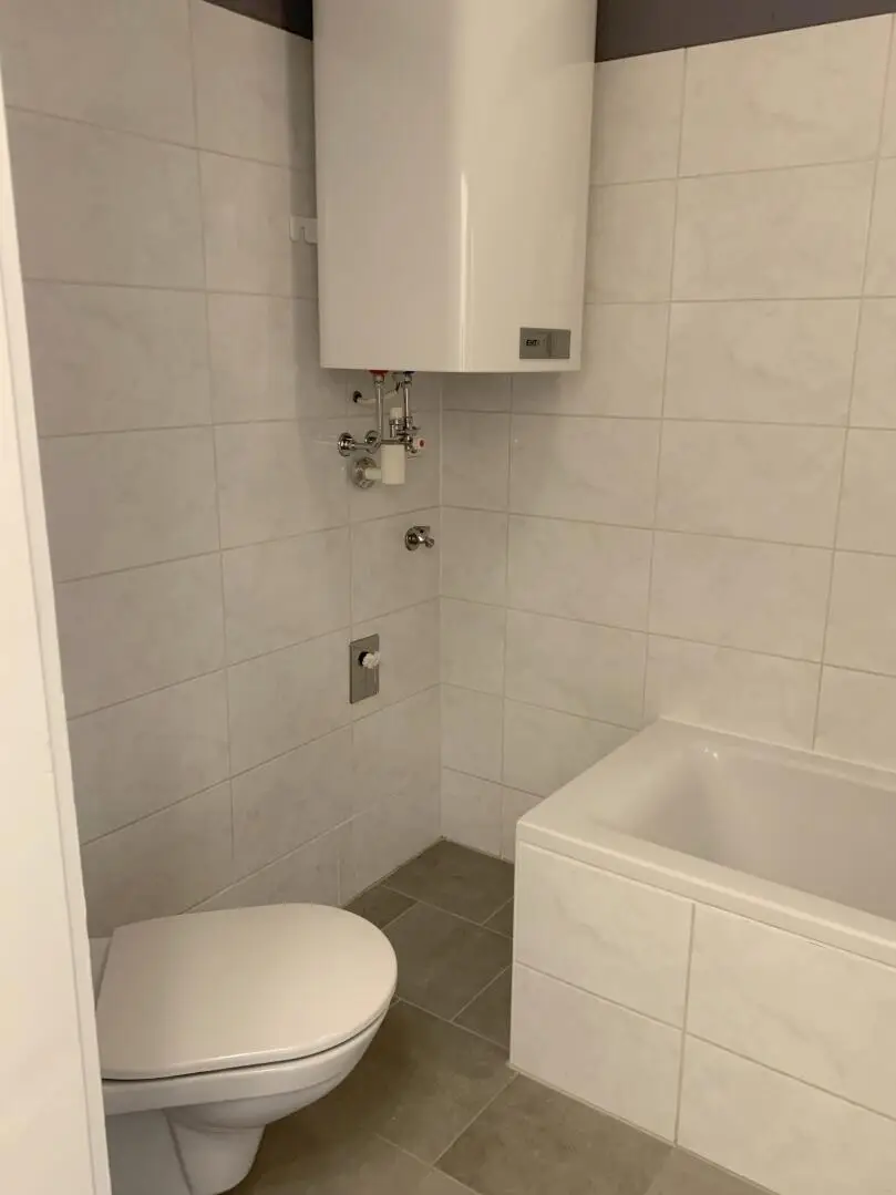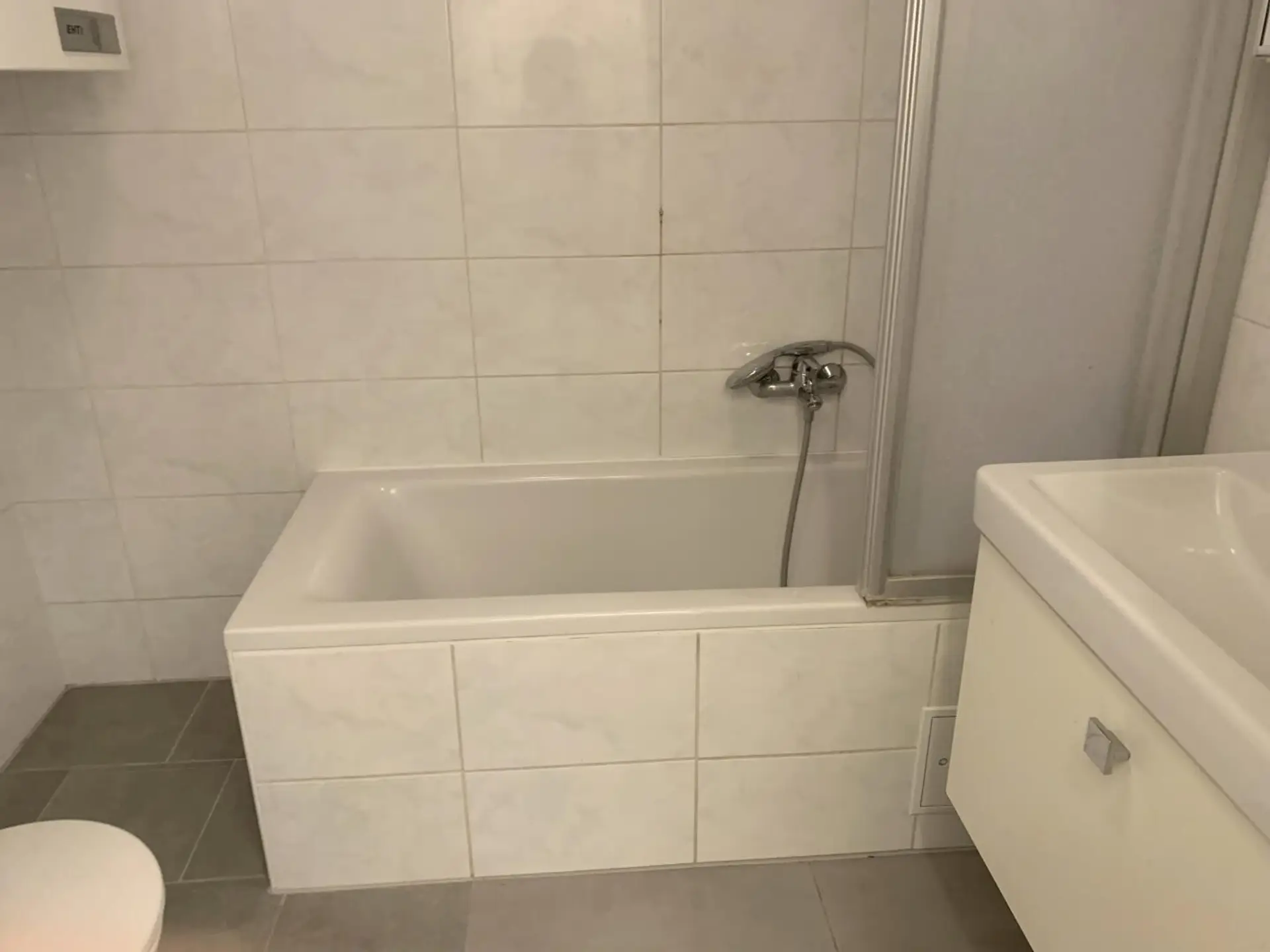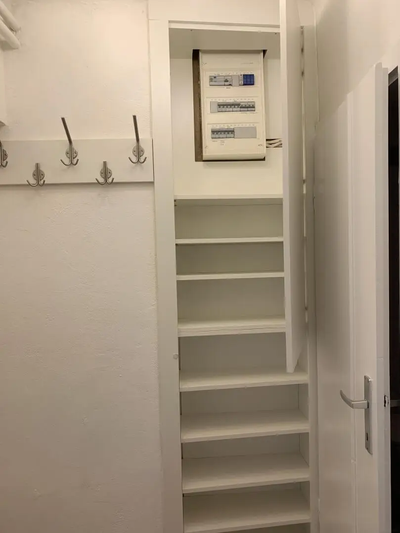 Eingangsbereich mit Garderobe und Zugang zum Badezimmer mit Wanne, WC und Waschmaschinenanschluß..
