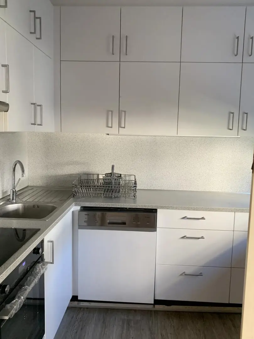 Direkt angeschlossen ist die Küche teilmöbliert, mit neuem Küchenblock und Herd.
