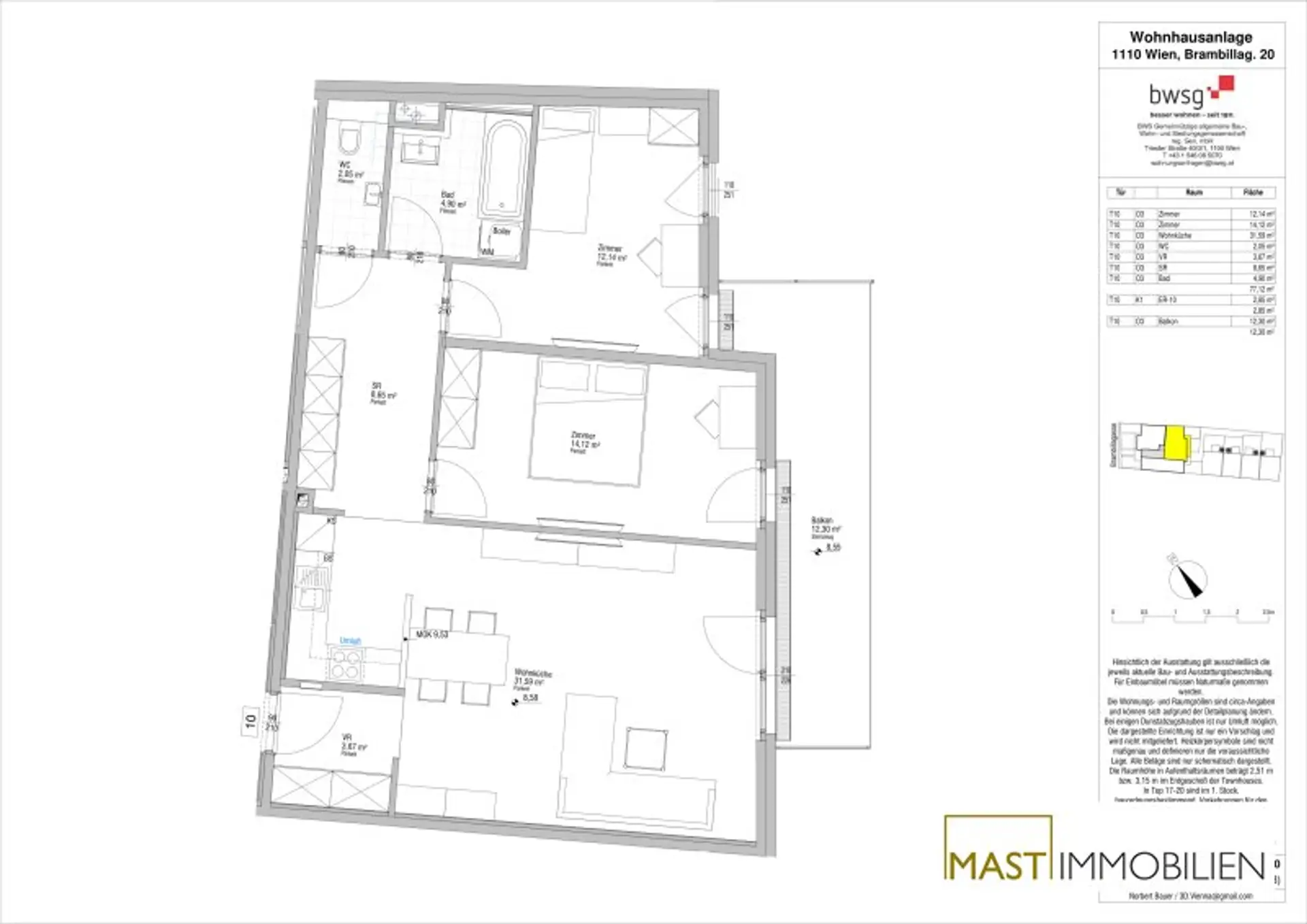 Die Wohnung befindet sich im 3. Liftstock und verfügt über 77,12 m² Wohnfläche + einen 12,30 m² großen Balkon.