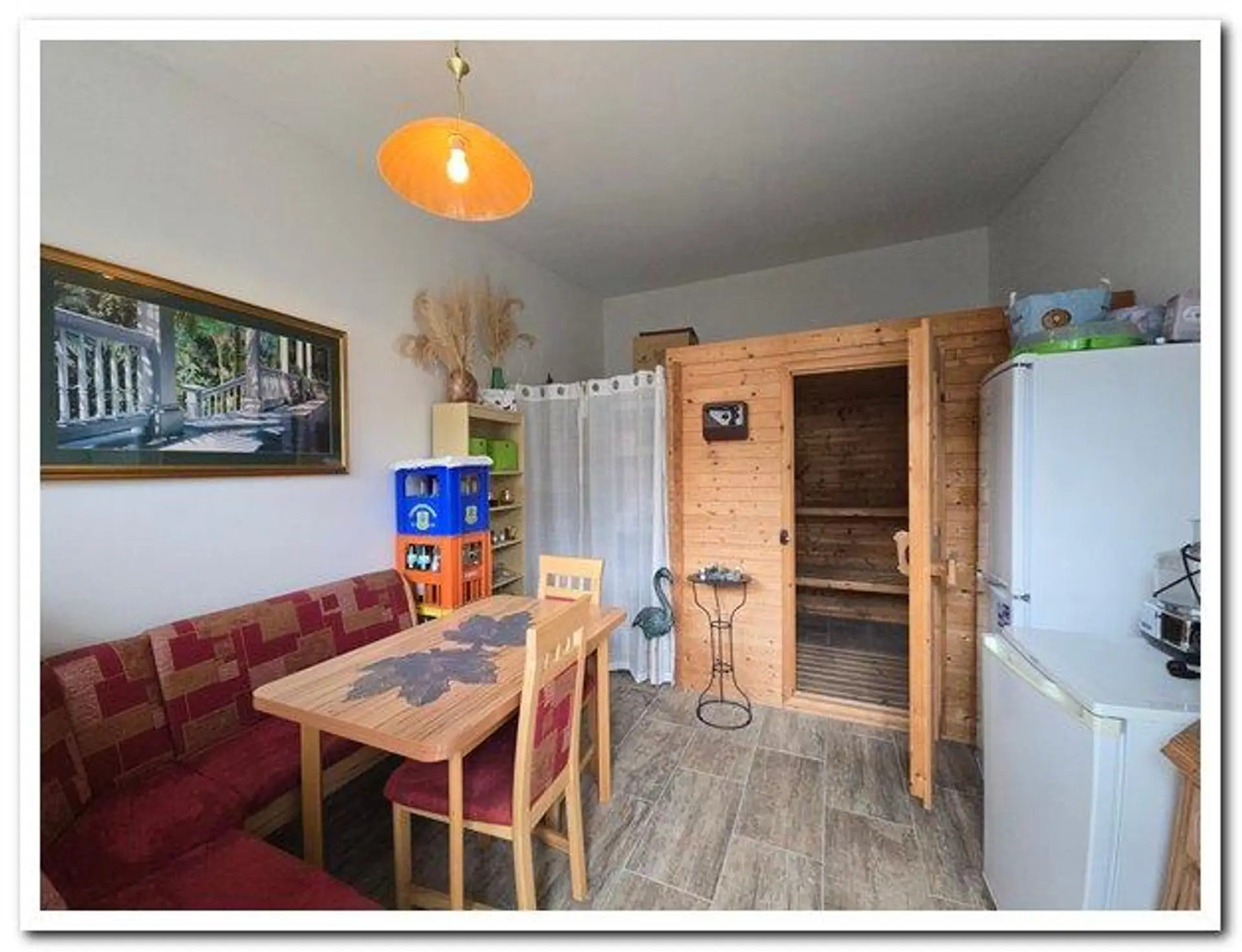 Zubau: Ca. 130 m²: 3 Räume für gewerbliche Nutzung samt WC und Wasseranschluss, Lager, Saunastüberl
