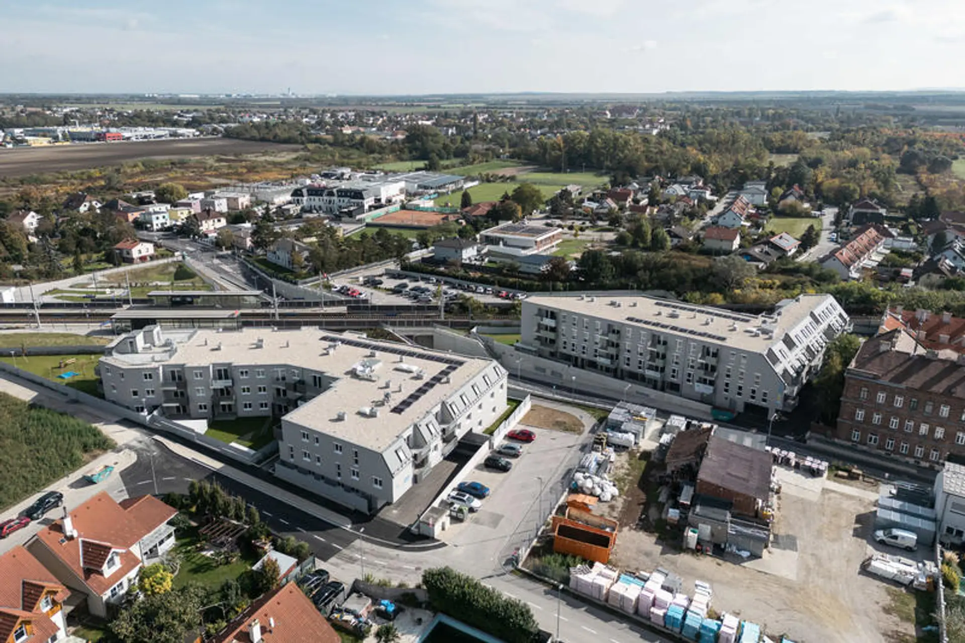 Die Lage in unmittelbarer Nachbarschaft zum neu gestalteten Bahnhof zeichnet sich auch durch ein umfangreiches infrastrukturelles Angebot, erreichbar durch die günstige Verkehrsanbindung, aus und ist optimal fürs tägliche Pendeln nach Wien: mit der Bahn beträgt die Fahrtzeit bis zum Hauptbahnhof / Wien lediglich 12 Minuten – mit dem Auto benötigen Sie über die A4 für die gleiche Strecke ca. 28 Minuten.