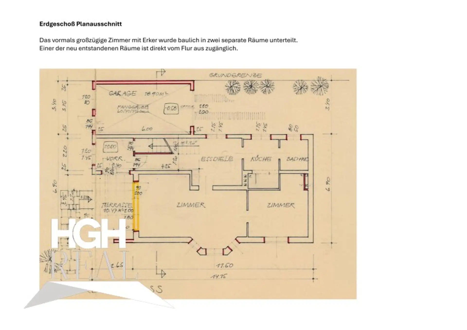 Das Haus wurde 1953 errichtet und 1971 aufgestockt. Das Haus ist in die Jahre gekommen und bedarf daher einiger Sanierungen.