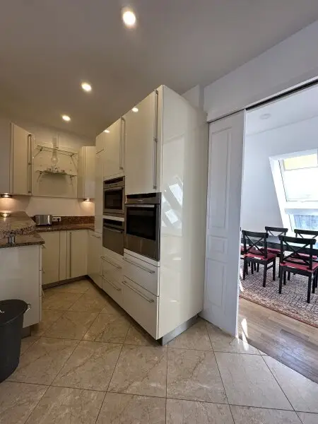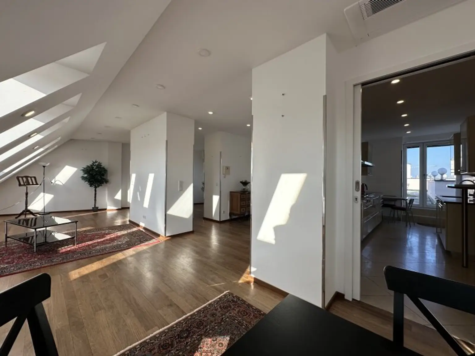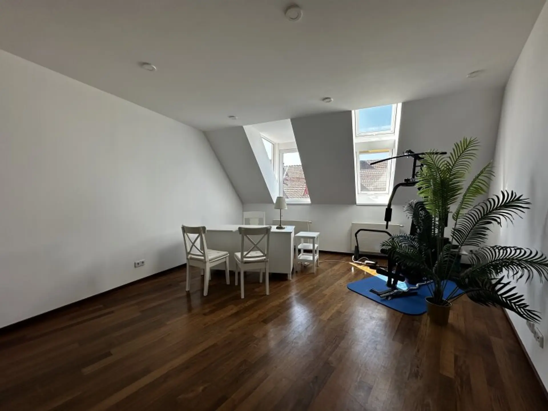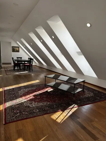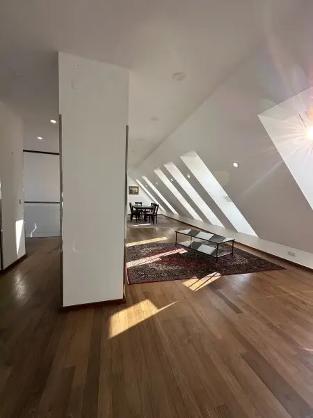 Die großzügige Dachgeschosswohnung erstreckt sich über zwei Ebenen und wurde vor rund zwei Jahren umfassend saniert. Dabei wurden neue Fenster eingebaut, die Elektrik erneuert und sämtliche Räume mit hochwertigem Parkettboden ausgestattet. Die Badezimmer sind mit modernen Feinsteinzeugfliesen versehen, eines der Bäder verfügt zusätzlich über eine Fußbodenheizung. Die Beheizung erfolgt über eine effiziente Vaillant-Gasetherme mittels Radiatoren.