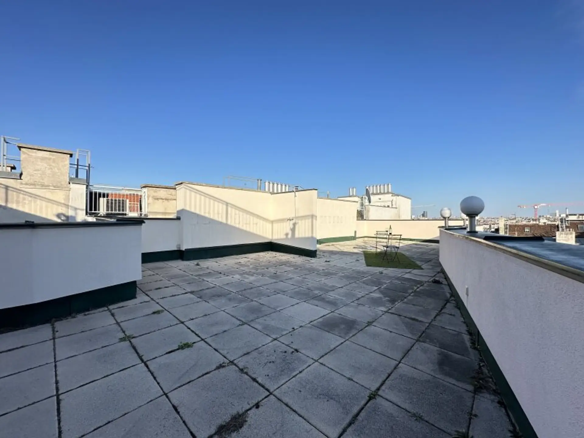Die Dachterrasse ist das absolute Highlight: Sie bietet nicht nur großzügige Freiflächen für Entspannung, Garten- oder Loungebereiche, sondern auch eine zusätzliche obere Ebene mit einem einzigartigen 360°-Wien-Blick.