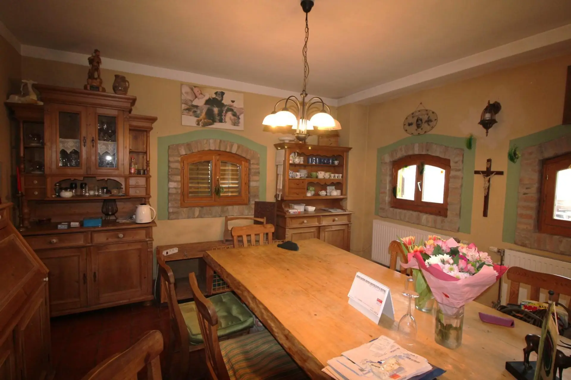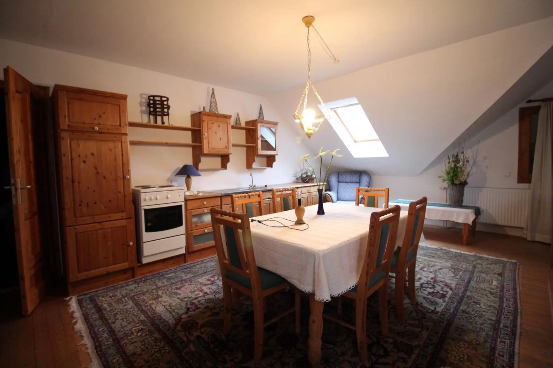 Bei der Ausstattung wurde großer Wert auf Qualität und Details gelegt: Hochwertige Materialien wie Vollholz, Kachelöfen und Klinker sorgen für ein warmes und stilvolles Ambiente. Zwei moderne Brennwertgeräte wurden erst im Jahr 2024 erneuert.
