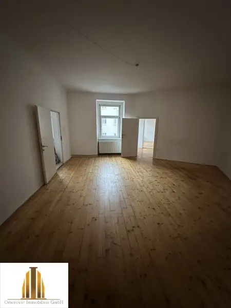 Die helle Wohnung mit ca. 108 m2 Wohnfläche befindet sich im 3. Stock ohne Lift und gliedert sich in einen geräumigen Vorraum, einen großen Wohnbereich, 2 Schlafzimmer mit Flügeltüren, ein Kabinett (Durchgangs Zimmer), eine Küche, Bad mit Dusche sowie ein WC.