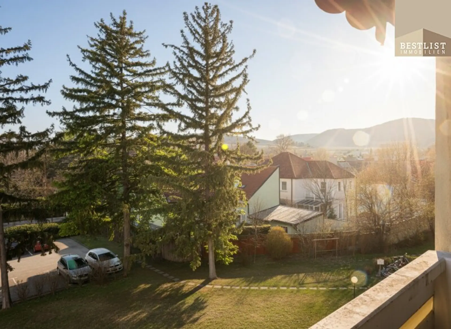Eine Wohnung mit sehr guter Raumaufteilung, viel Licht und einer besonders schönen Loggia, mit Ausblick auf die Weinberger.
