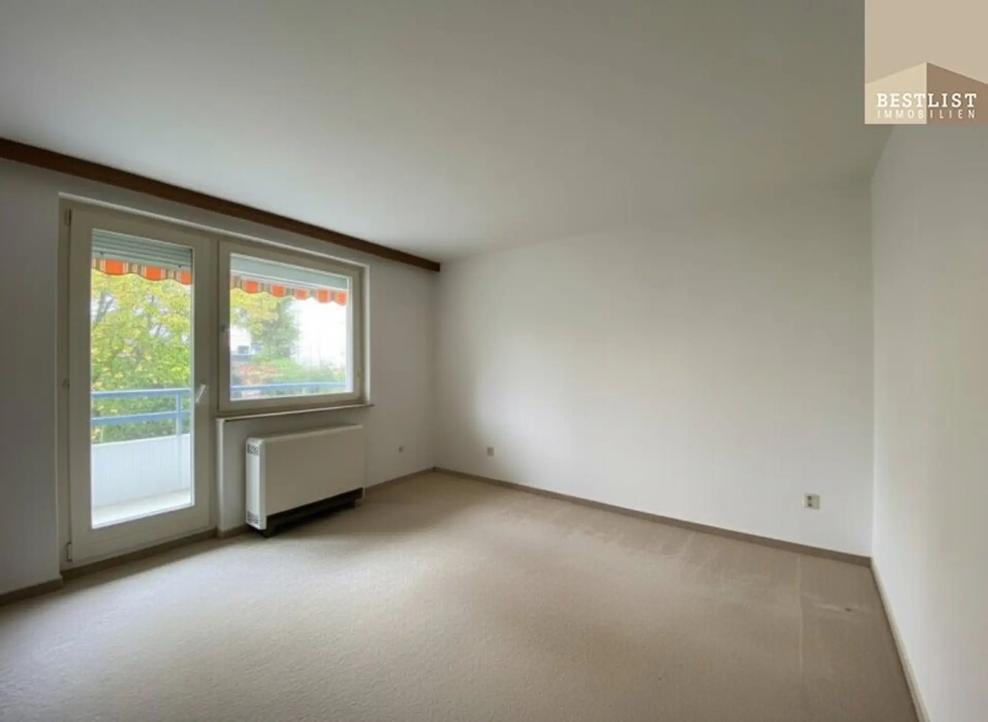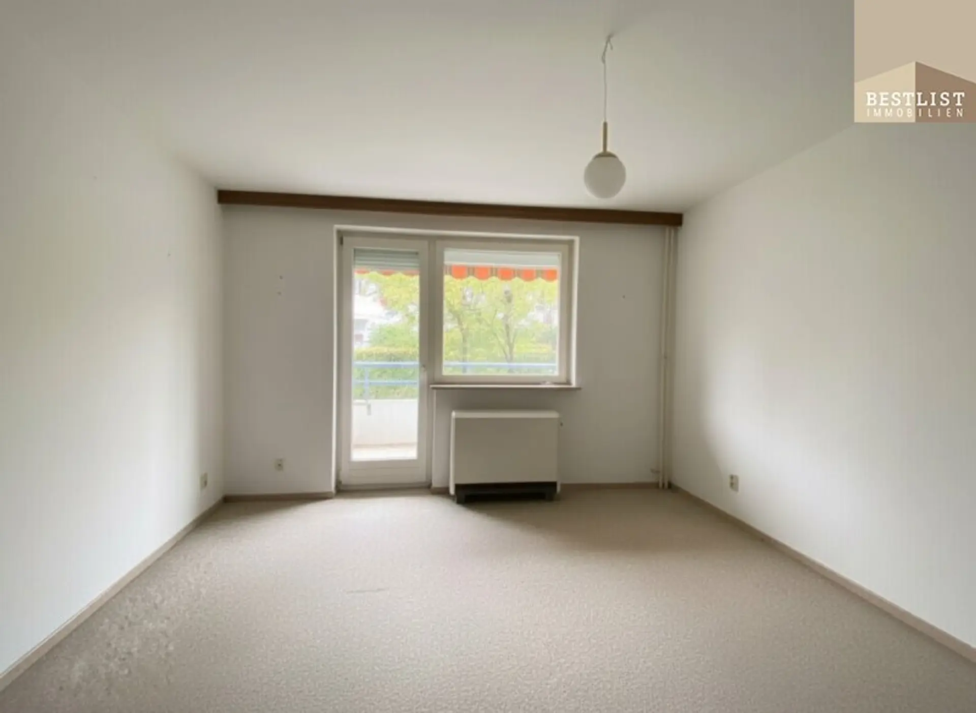 Wohnzimmer mit 15,6 m² und Zugang zur Loggia (5,32 m²)