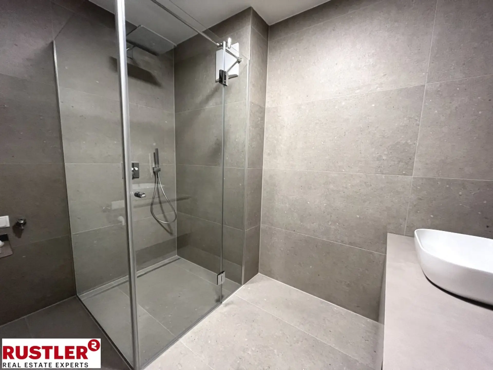 2 Schlafzimmer, Badezimmer mit Dusche und Doppel-Waschtisch, sowie WM-Anschluss. Ein separates WC und ein Abstellraum komplettieren die Wohnung.