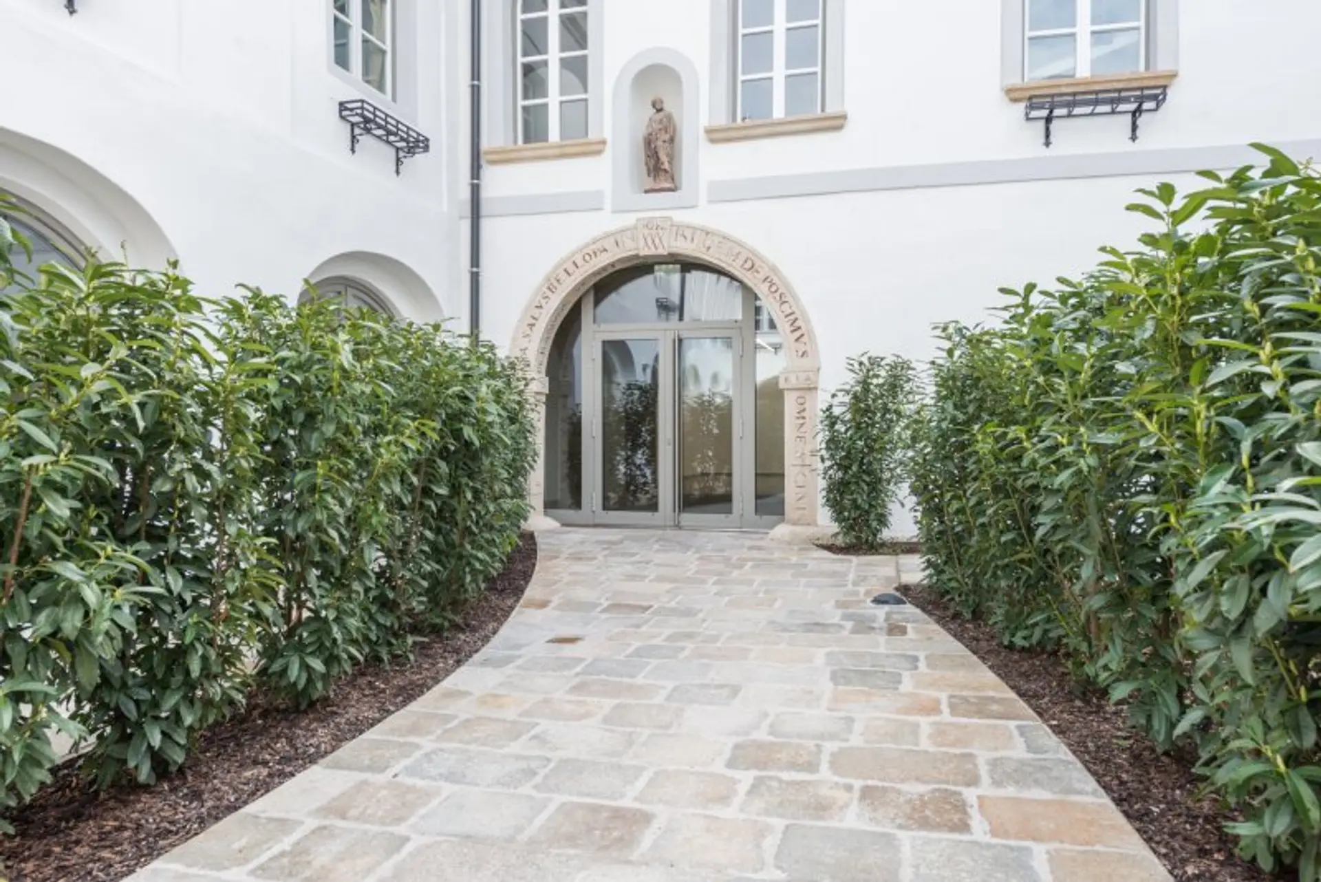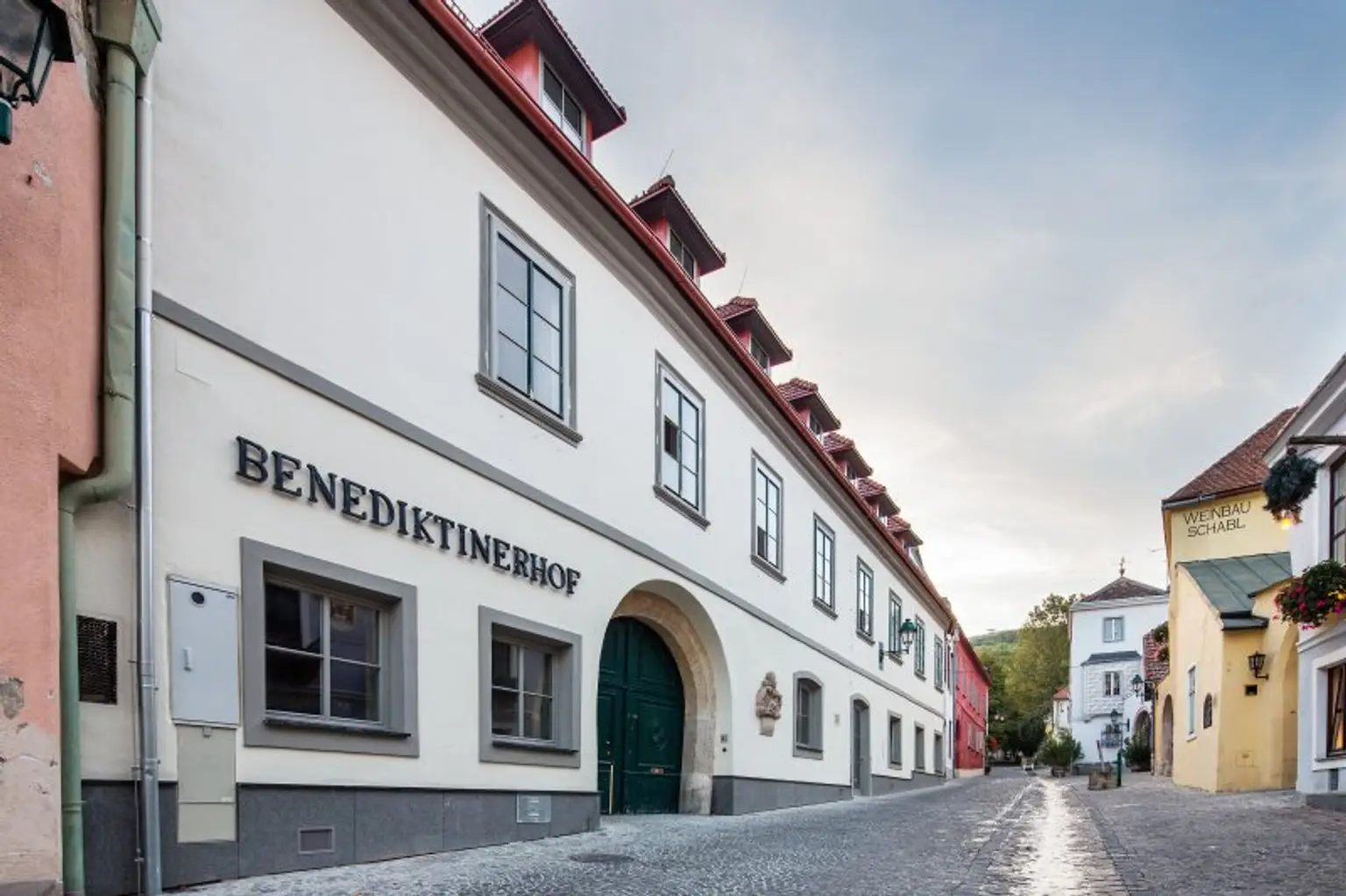 Der Prachtbau aus dem 16 Jhdt. wurde erneuert und das Dachgeschoss ausgebaut. Im hinteren Bereich der Liegenschaft wurde zusätzlich ein Neubaukörper situiert. Beide Teile des Benediktinerhofs sind baulich miteinander verbunden und verfügen über eine gemeinsame Tiefgarage.