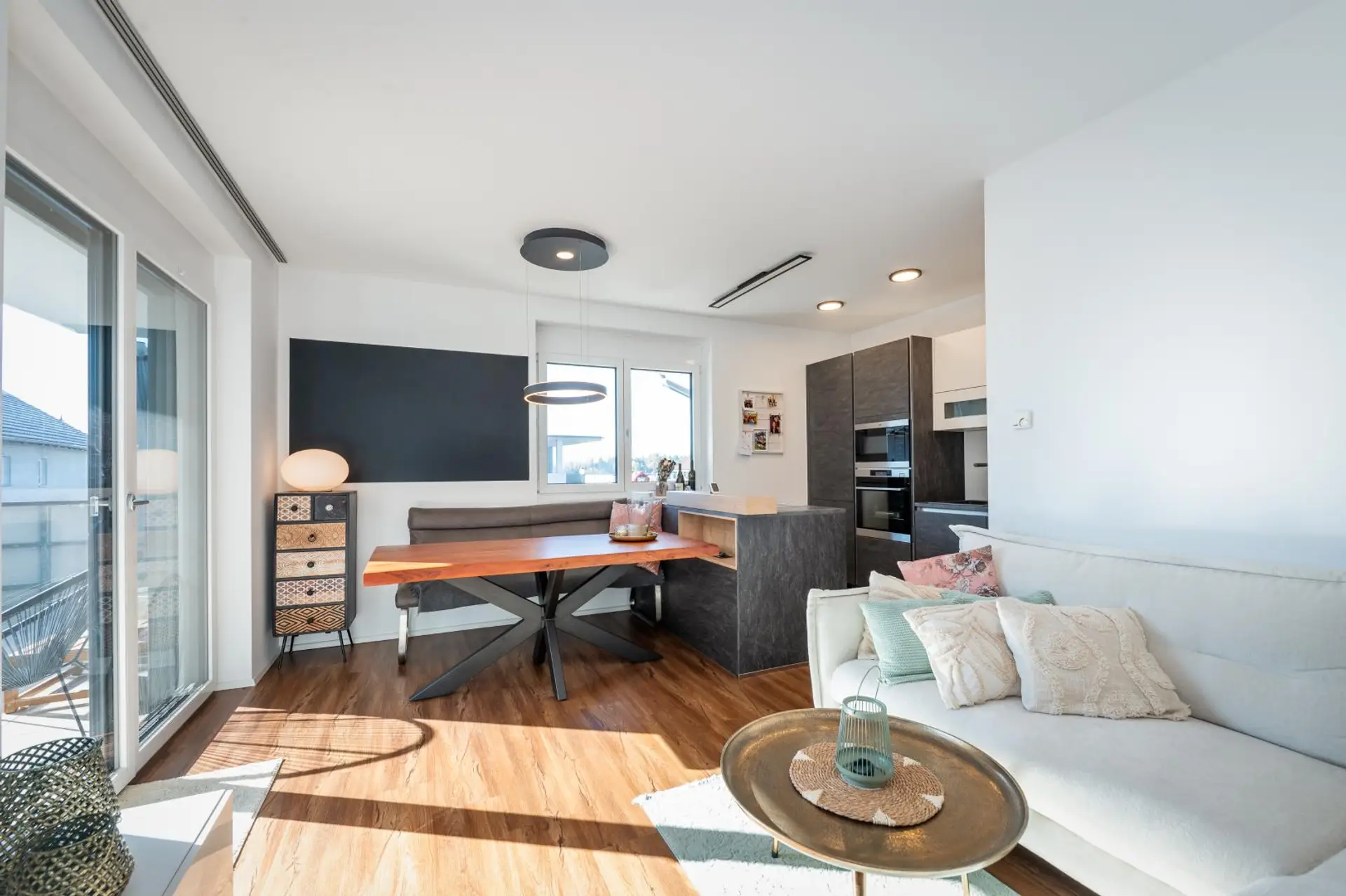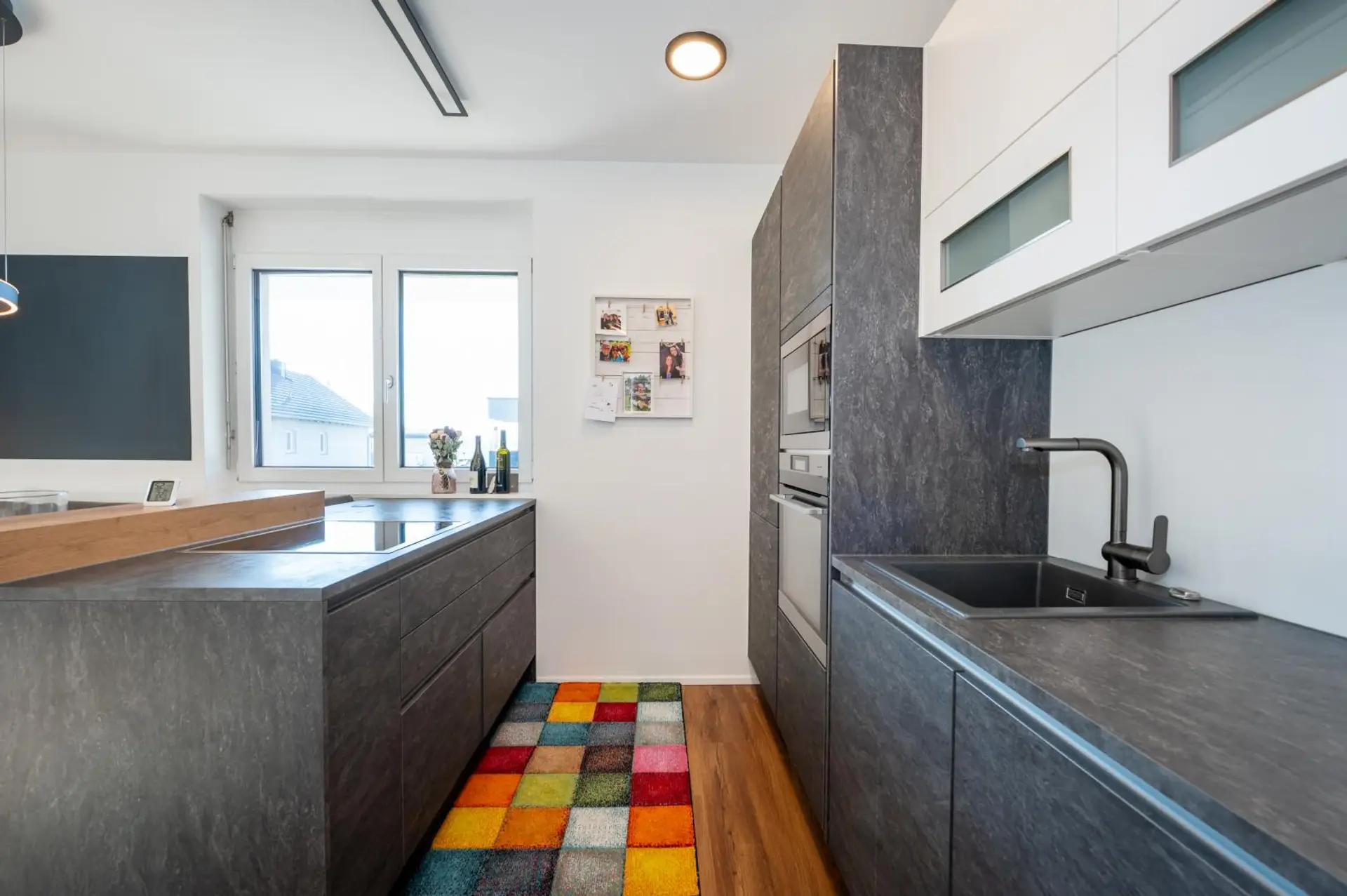 Die moderne und sehr gepflegte Küche, ist im Kaufpreis enthalten und lädt ein, Ihre Lieben zu verwöhnen und das Essen mit einem Glas Wein im großzügigen Wohn-/Esszimmer oder auf Ihrer eigenen Dachterrasse zu genießen.