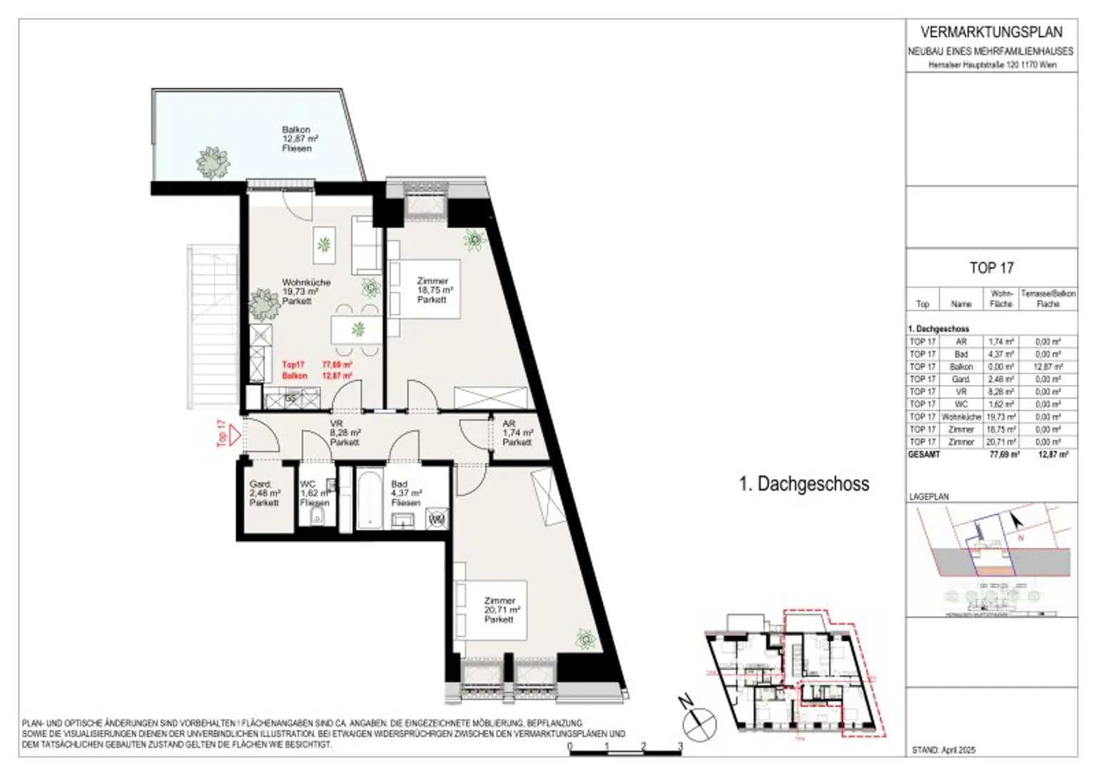 Die ca. 78 m² 3 Zimmer Wohnung ist einerseits nach Nordosten (Wohnzimmer samt Balkon und Schlafzimmer 1) und andererseits nach Südwesten (Schlafzimmer 2) ausgerichtet. Nordostseitig blickt die Wohnung auf eine große, ruhige Innenhof (KEIN DIREKTES GEGENÜBER!) und Südwestseitig auf die Hernalser Hauptstraße. Die Wohnküche hat einen direkten Zugang zu einem ca. 13 m² Balkon! ALLE Zimmer sind getrennt begehbar!