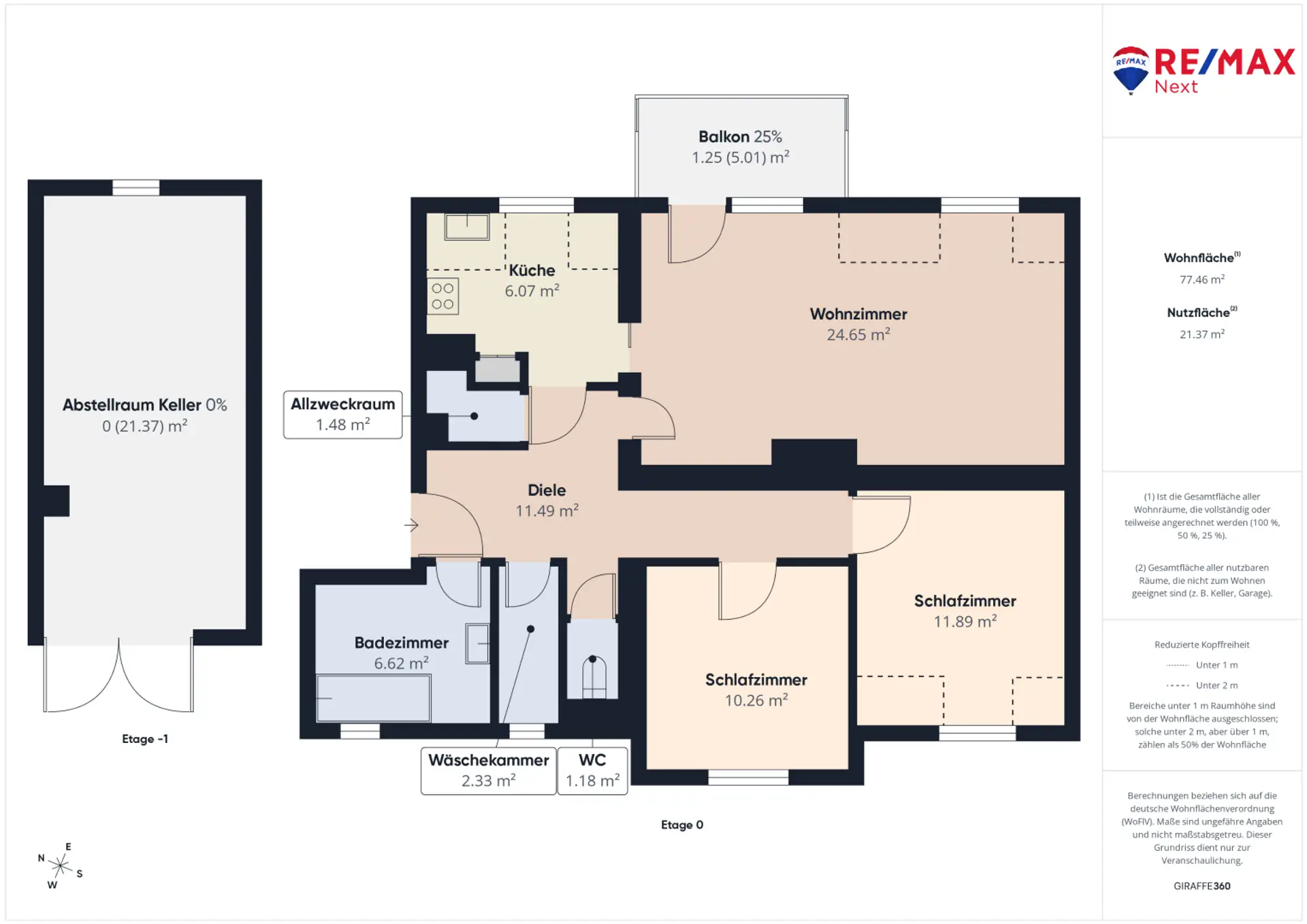• Kellerabteil / Abstellraum: ca. 21,37 m²