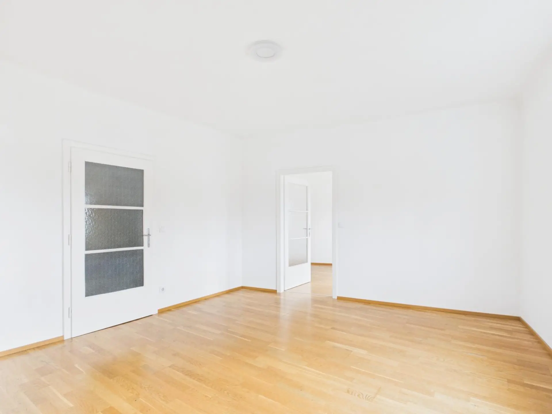 Die Wohnung verfügt über Wohnzimmer, zwei weitere Zimmer, Küche, Vorraum, Badezimmer sowie ein separates WC. Ein Kellerabteil ist der Wohnung zugeordnet.