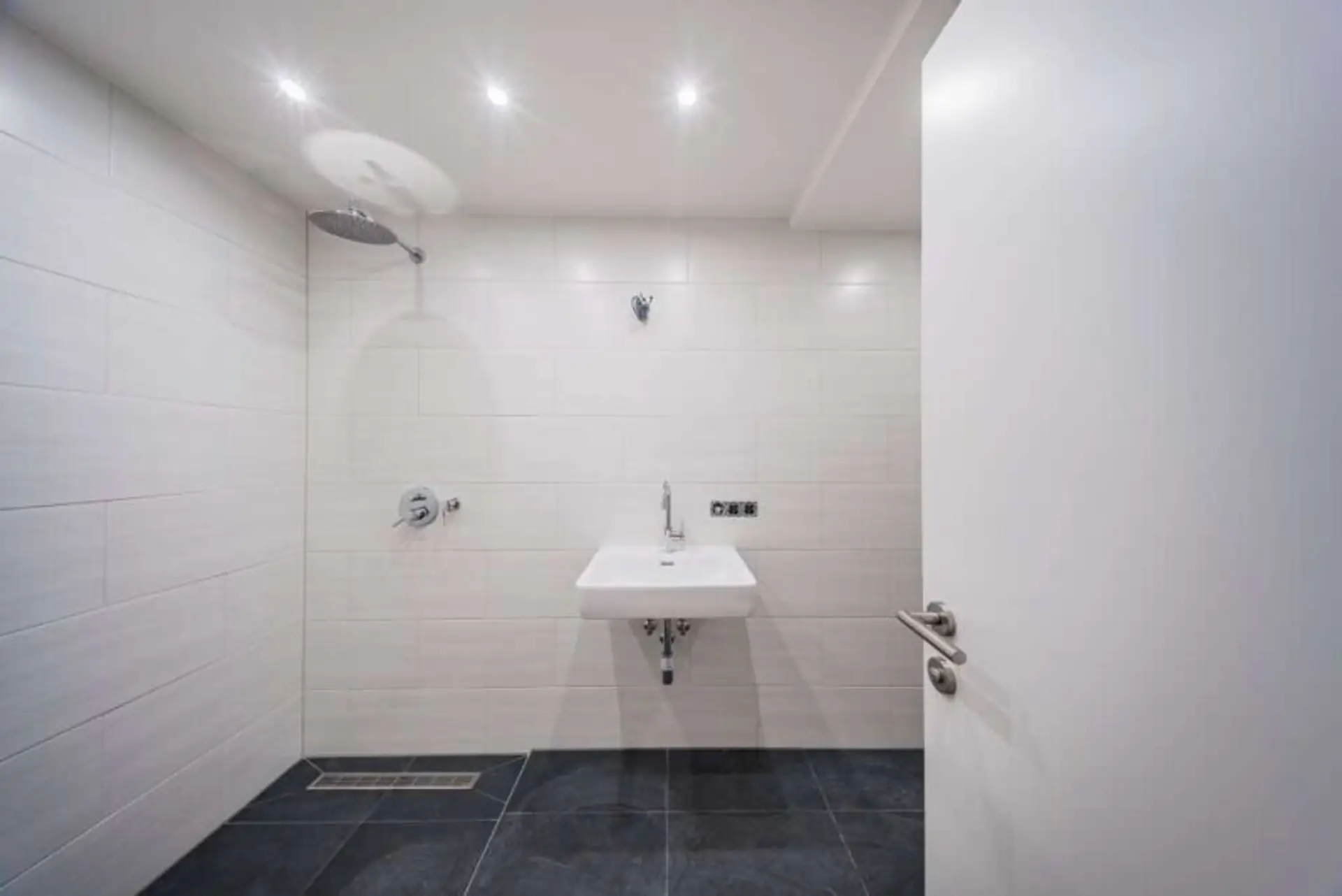Badezimmer mit ebener Dusche & Waschtisch