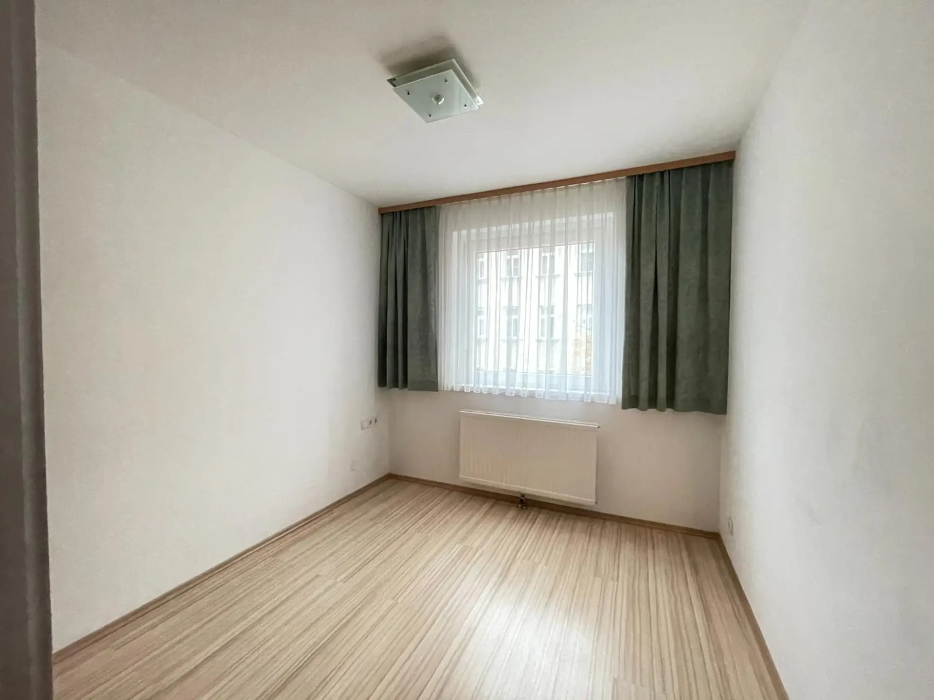 Über den zentralen Vorraum gelangen Sie in das ca. 20 m² große, innenhofseitige Wohnzimmer mit Zugang zur Loggia, ein zweites, ca. 17 m² großes Zimmer, ein drittes, ca. 9 m² großes Zimmer, die ca. 11 m² große, separate Küche mit Fenster, das Bad, das WC und den Abstellraum.