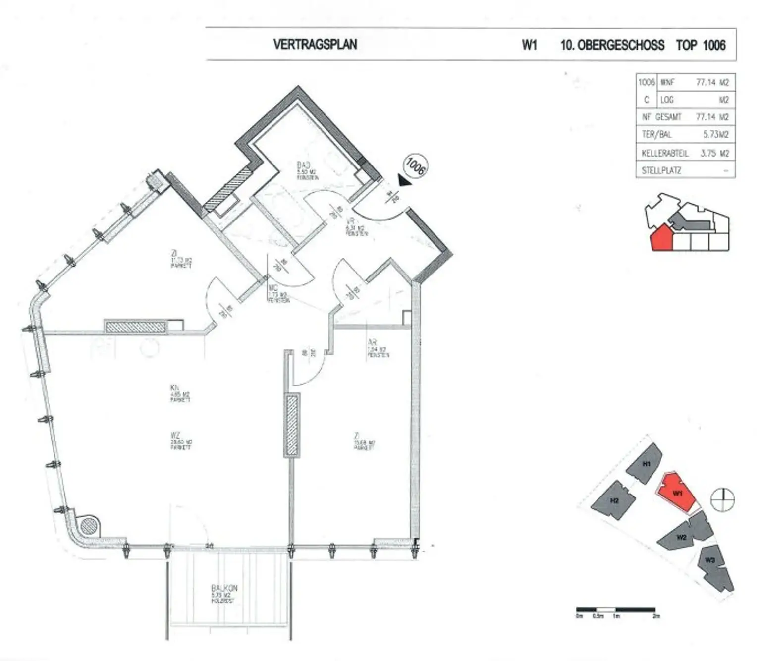 - Tiefgarage (Miete € 220,- p.m.)