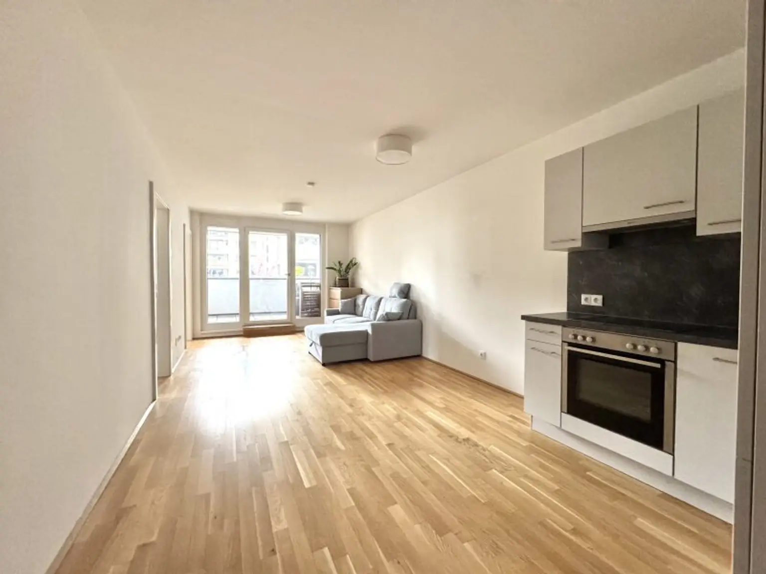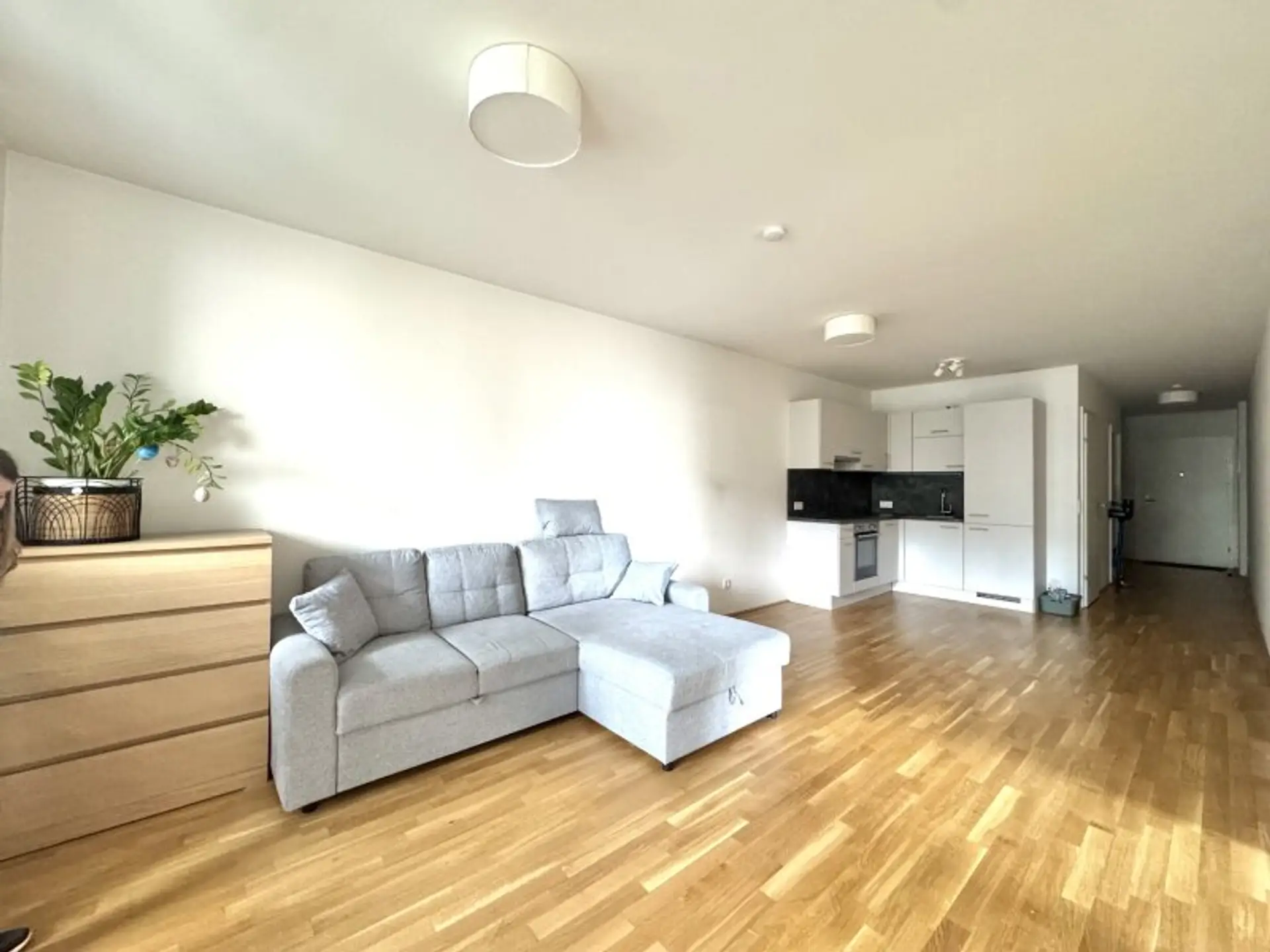 Die Fotos im Inserat entsprechen einer Wohnung im selben Projekt und nicht der besagten Wohnung da diese noch vermietet ist.