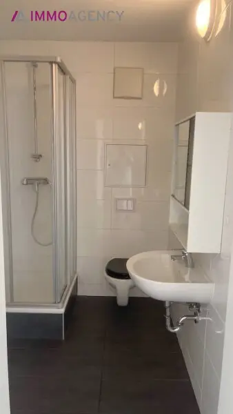 Darüber hinaus stehen ein Vorraum (ca. 3,73 m²), ein Abstellraum (ca. 1,60 m²) sowie ein Badezimmer (ca. 3,62 m²) mit Dusche, WC und Waschmaschinenanschluss zur Verfügung.