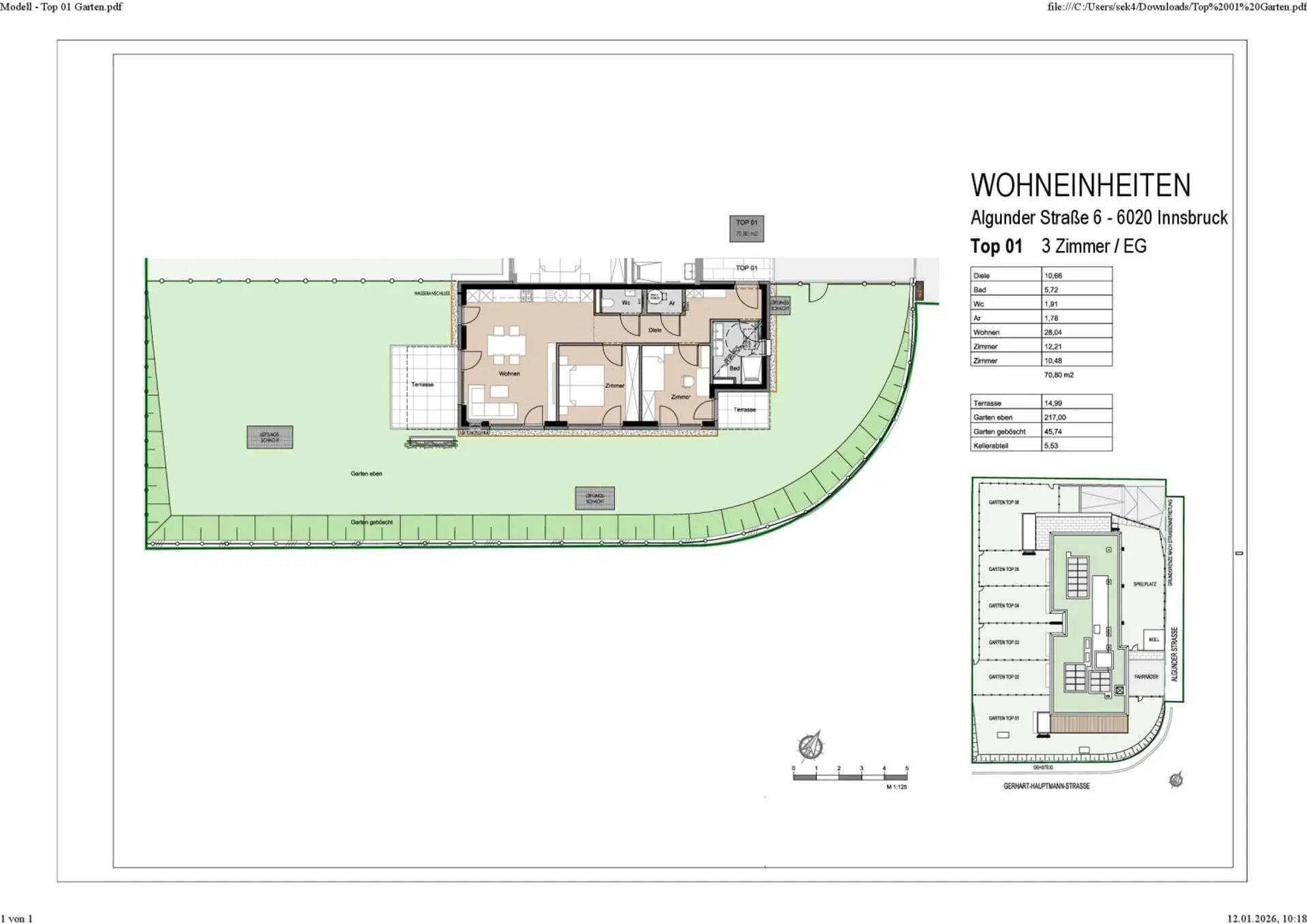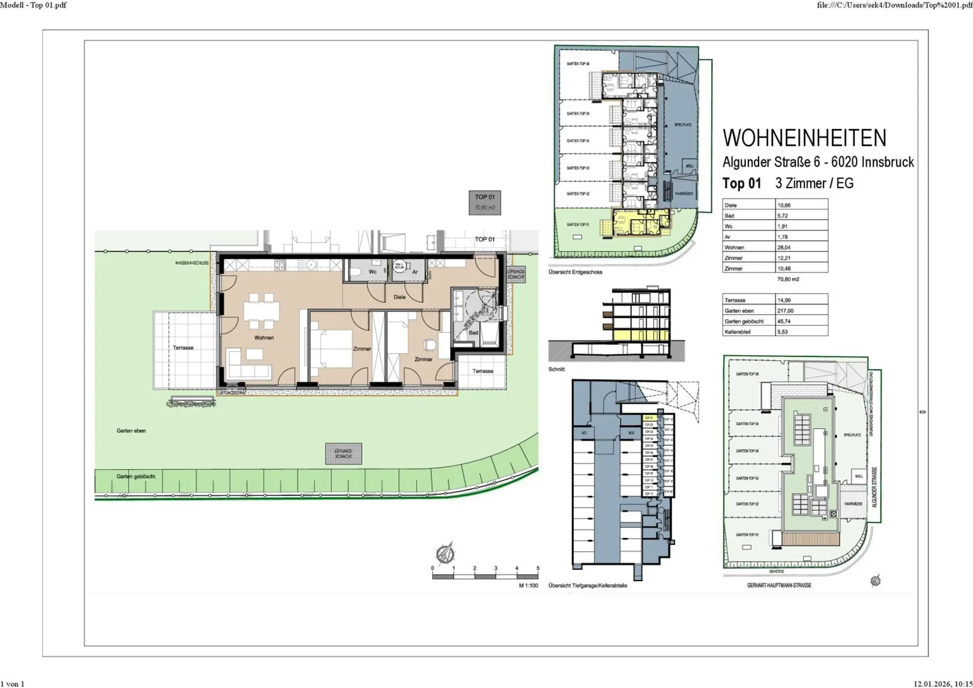 Die gegenständliche 3-Zimmer-Wohnung befindet sich im Erdgeschoß. Sie verfügt über eine Wohnfläche von ca. 70,80 m² und einer Freifläche von ca. 277,70 m².