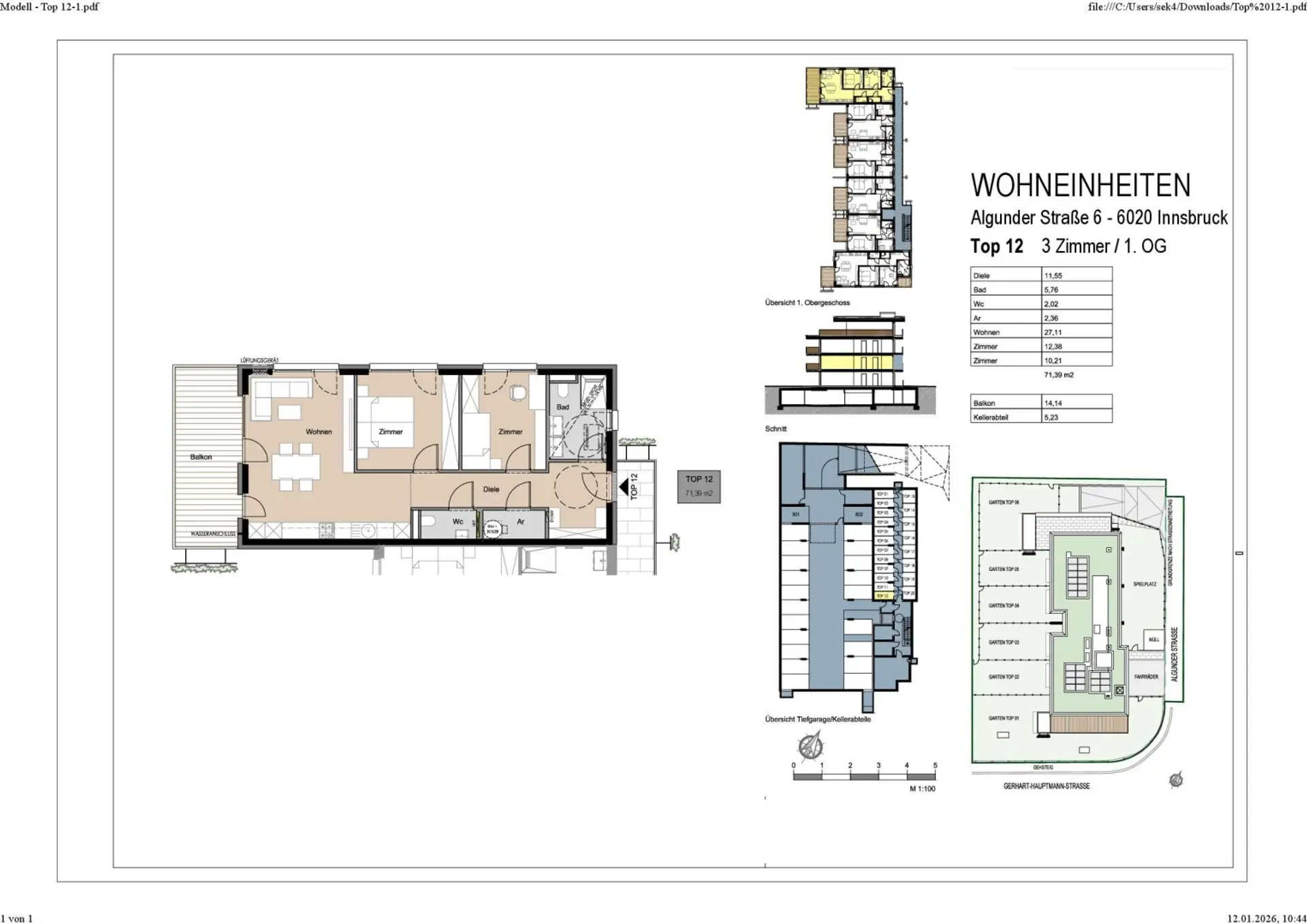 Die gegenständliche 3-Zimmer-Wohnung befindet sich im 1. Obergeschoß. Sie verfügt über eine Wohnfläche von ca. 71,39 m² und eine Balkonfläche von ca. 14,14 m².