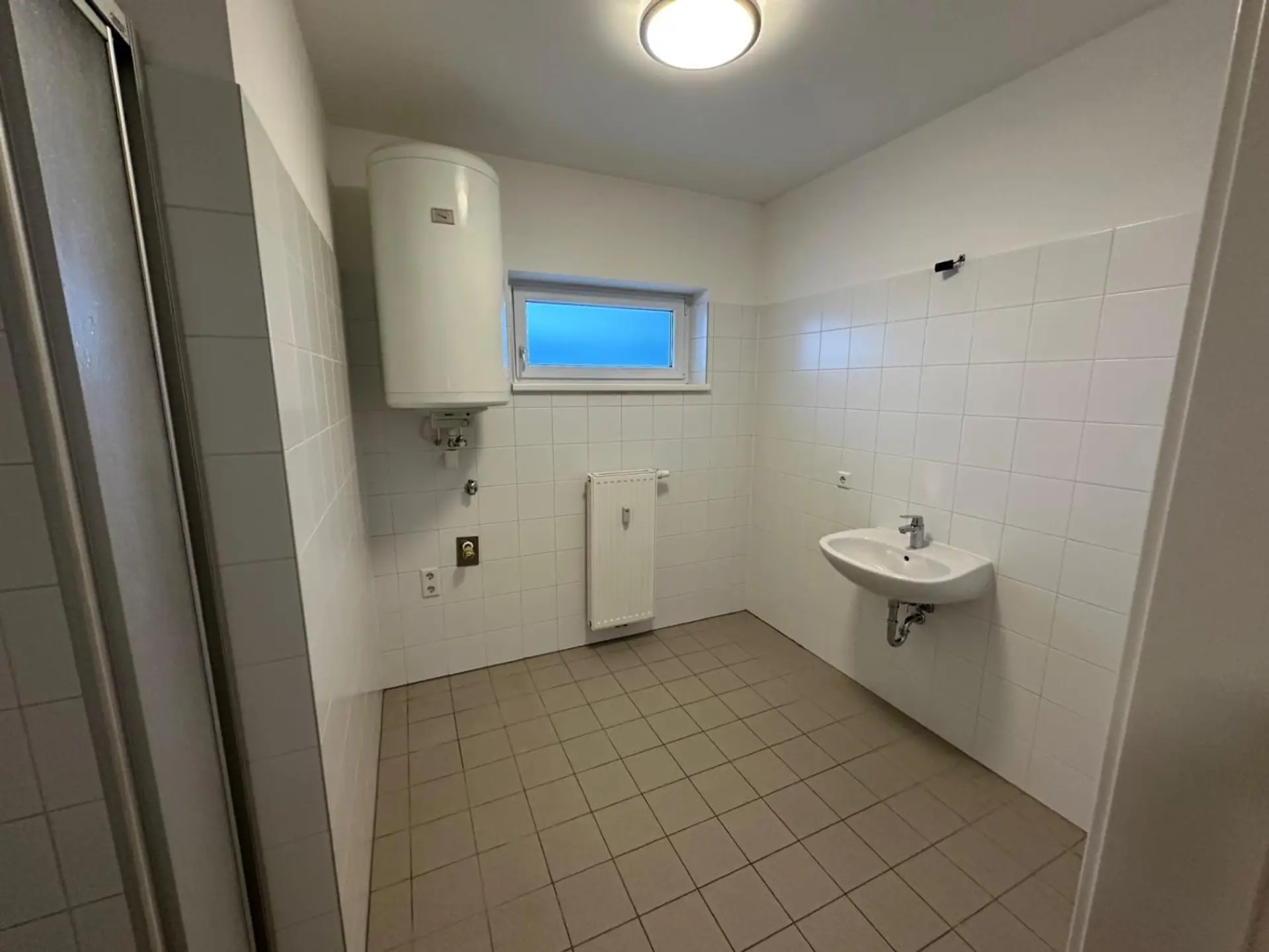 * Badezimmer mit Dusche und Waschmaschinenanschluss