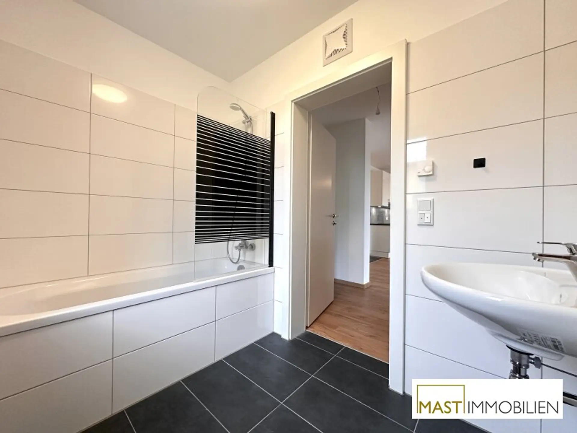 Nach Eintritt in die Wohnung gelangen Sie in ein großzügiges Vorzimmer mit ausreichend Platz für Ihre Garderobe, direkten Zugang in die sanitären Räumlichkeiten und das Wohnzimmer. Ausgestattet wird die Wohnküche mit einer hochwertigen Markenküche inkl. Geräte. Der Zugang auf den Balkon mit ca. 6,40 m² erfolgt durch die Wohnküche. Das Schlaf- & Kinderzimmer ist ca. 12 m² groß und bietet ausreichend Möglichkeiten für Ihre Möbel. Das modern gestaltete Badezimmer ist mit einer Badewanne, Handwaschbecken & einem WM-Anschluss ausgestattet. Selbstverständlich ist das WC separat und mit einem Waschbecken versehen.