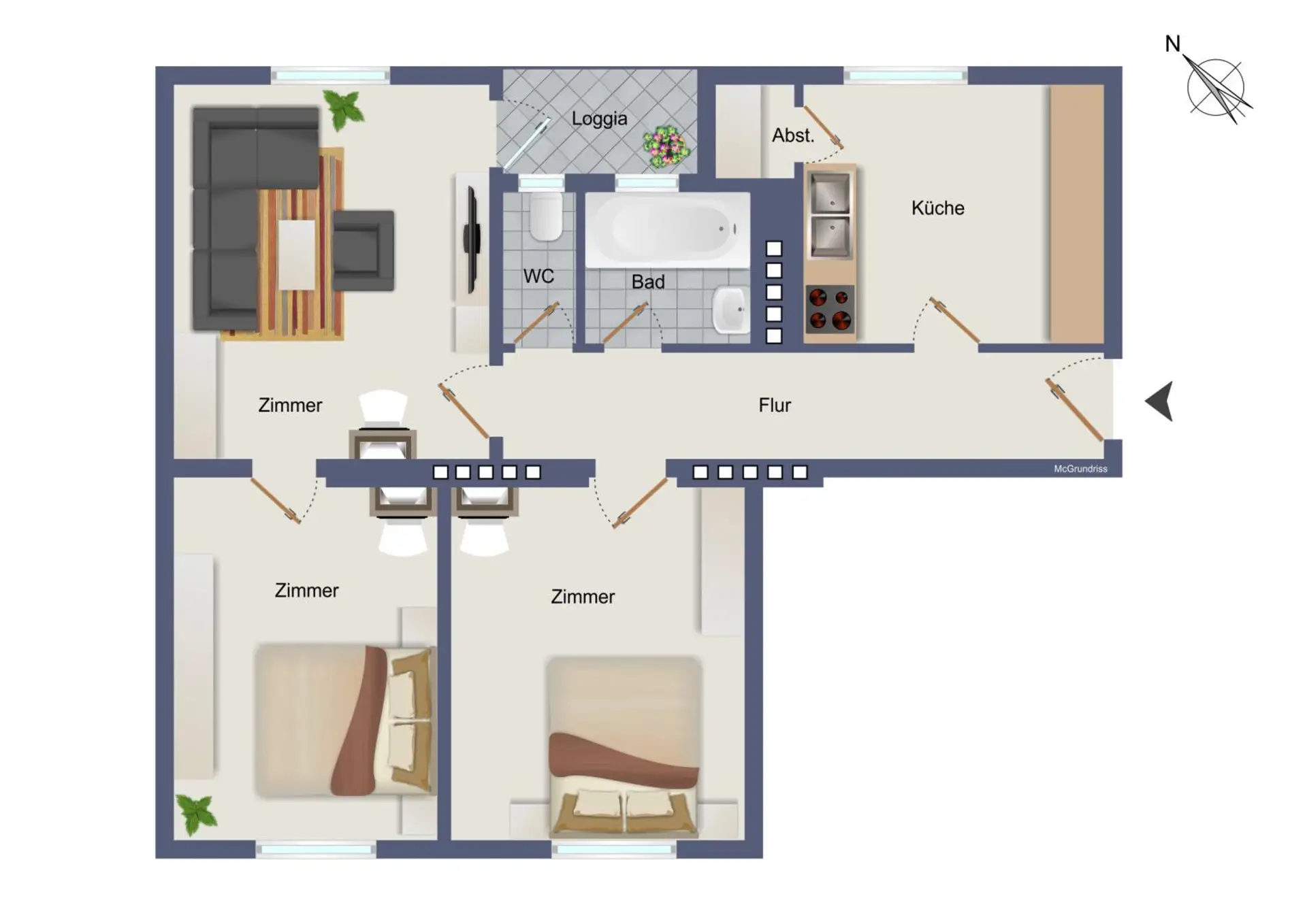 Die Wohnung überzeugt durch eine funktionale und gut durchdachte Raumaufteilung: