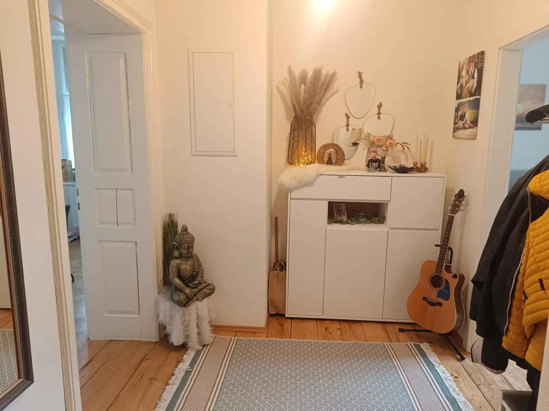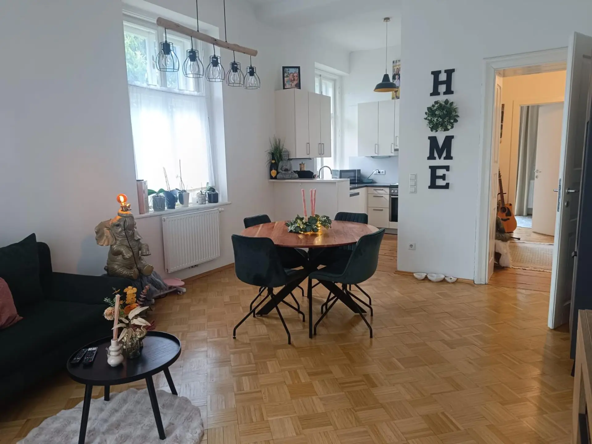 Raumaufteilung: Vorraum, Wohn-/Ess-/Küchenbereich, zwei Zimmer, Schrankraum, Badezimmer und WC.