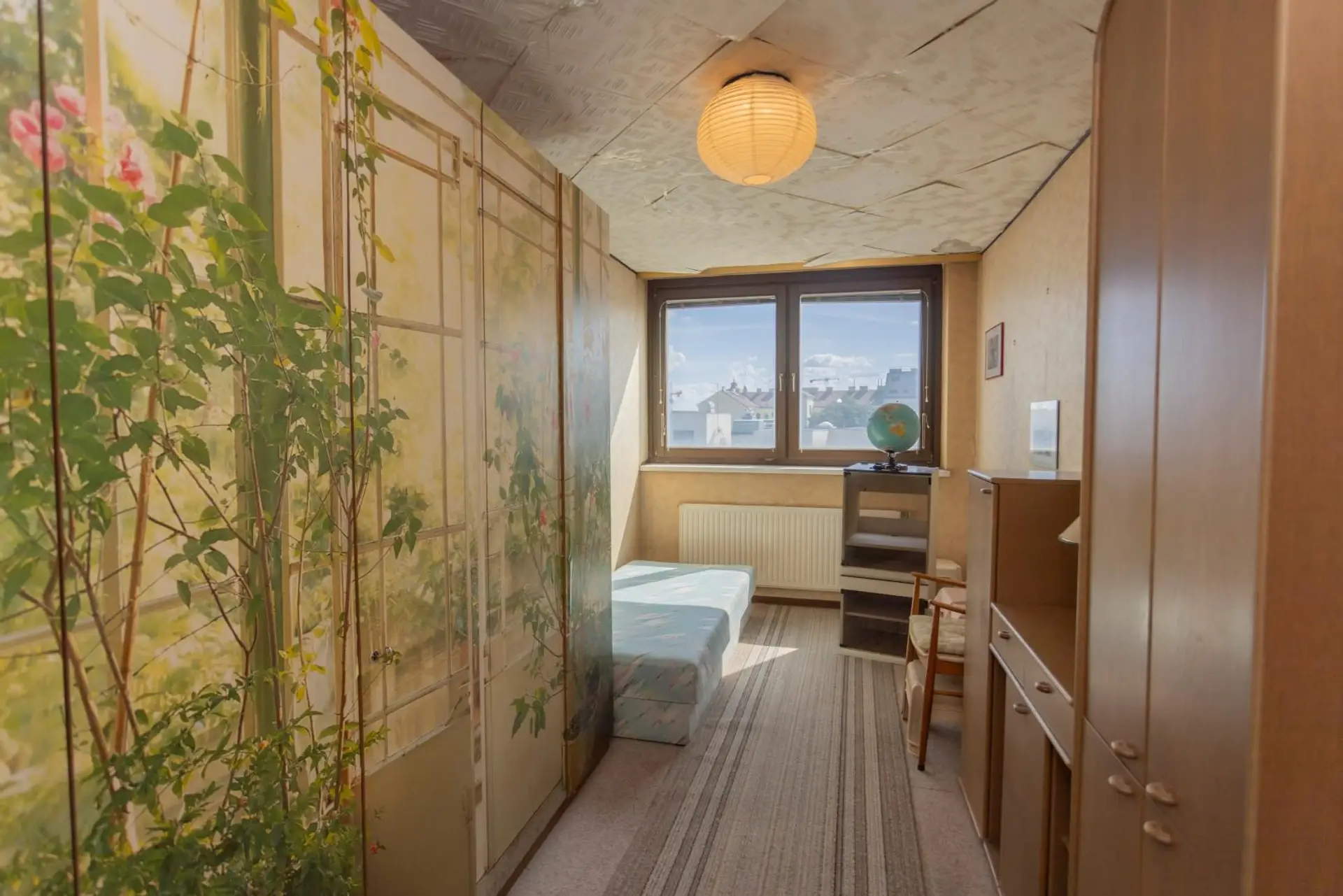 Die Wohnung liegt im 4. Obergeschoss eines gepflegten Hauses mit Lift. Bereits das einladende Vorzimmer bietet viel Platz für Garderobe. Über einen Zwischenflur erreicht man den separaten Schlaftrakt mit zwei (Schlaf‑)Zimmern.