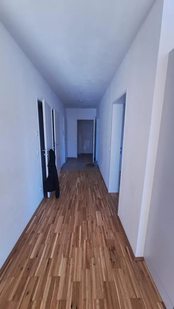 Die Wohnung ist aufgeteilt in Vorraum, Abstellraum, Zimmer, Schlafzimmer, Badezimmer mit Badewanne und WC.