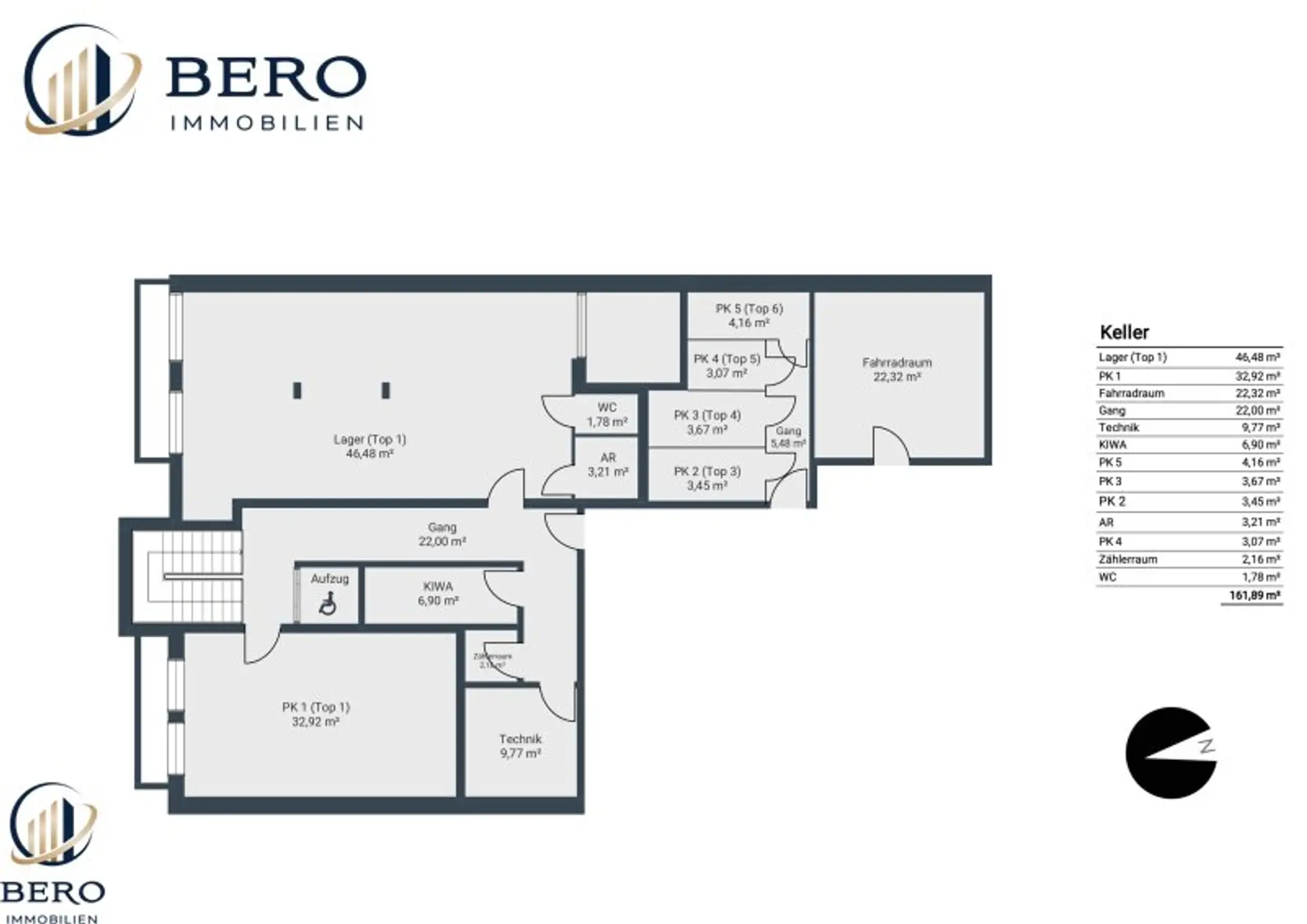Jeder Immobilie ist ein Einlagerungsraum im Kellergeschoss zugeordnet. Der Fahrrad- und Kinderwagenabstellraum befindet sich ebenfalls im Kellergeschoss, wie auch die Tiefgarage.